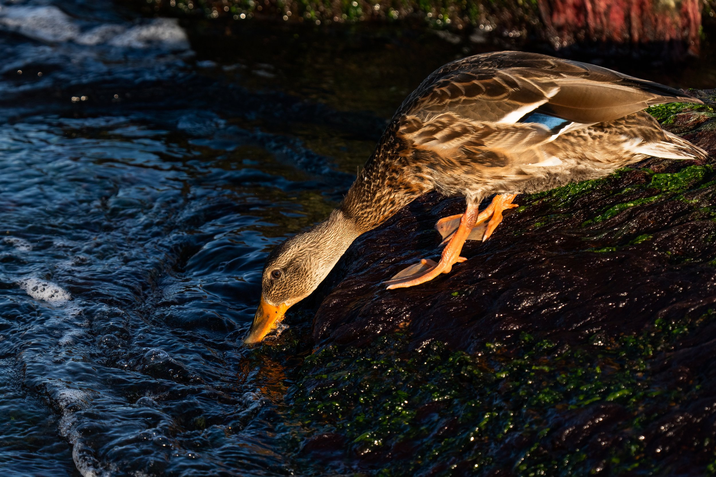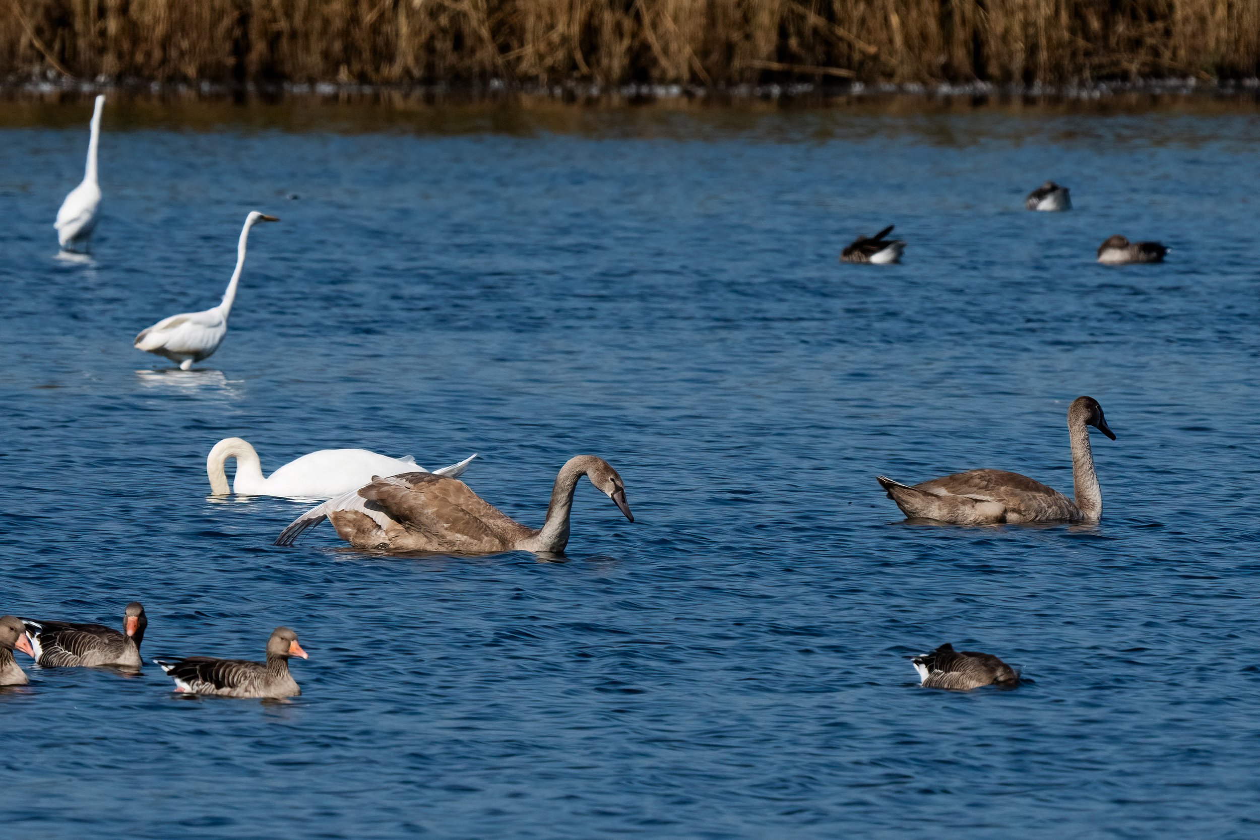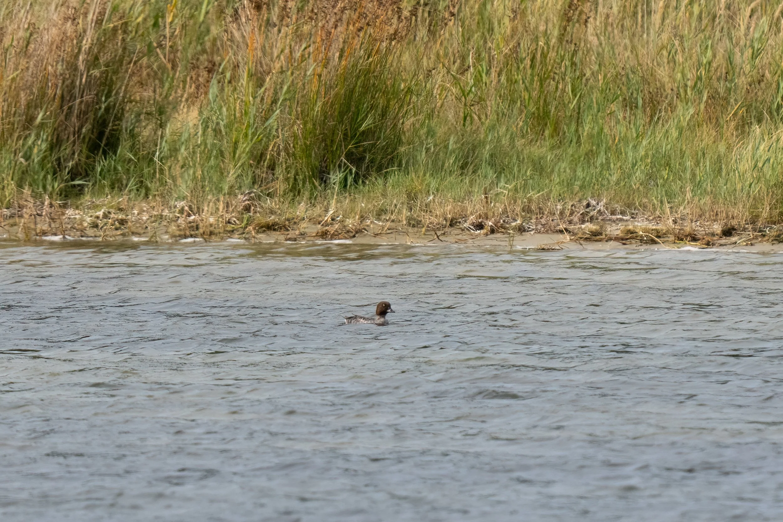 Jemnitzschleuse is a river lock on the Warnow just outside Rostock. The lock creates a habitat edge where slow, still water on one side meets faster-moving water on the other, and that kind of transition zone concentrates feeding activity in a way that open water simply doesn't. We stopped here just because it was the first look at the Baltic and we just had to see it!