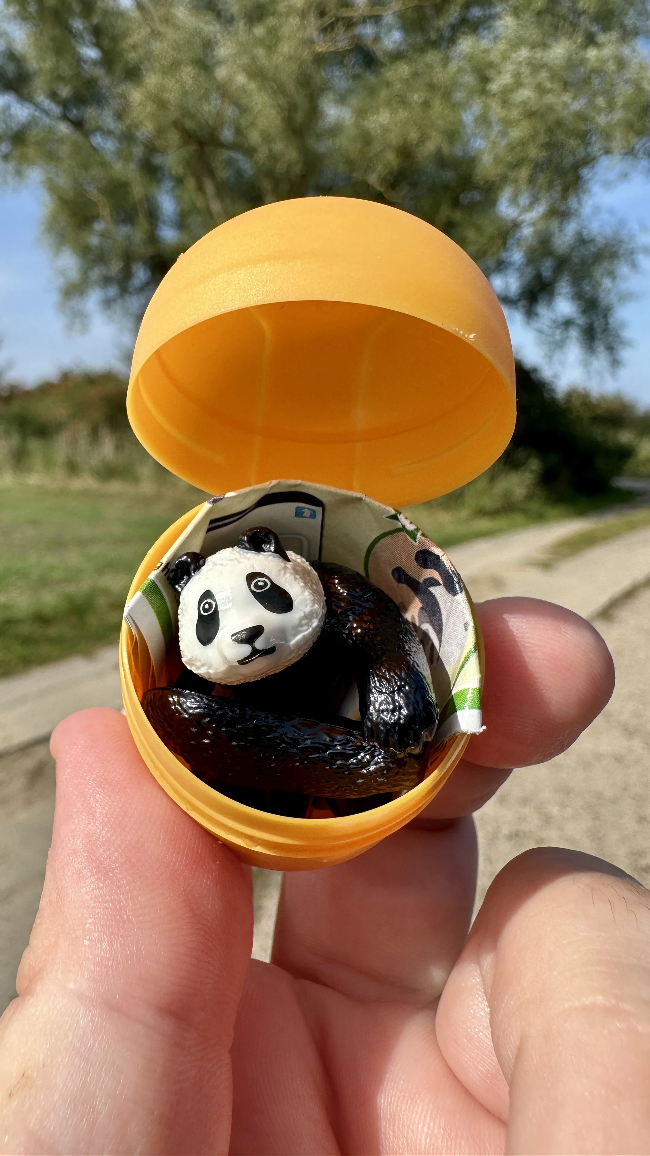 This is a coastal marsh reserve, a shallow lagoon system that runs along the southern Baltic coast. The habitat mix is excellent: extensive reed beds, open shallow water, and wet meadows that transition into drier grassland at the edges. That variety means the bird list changes depending on exactly where you are! The elevated viewpoints along the shore give you sight lines across the reed bed that path-level walking simply can't. This was a lovely place to walk around and we had it pretty much to ourselves, like more places on the north side. This is just such a lovely area. We had our first Kinder eggs at the end of this hike, and I got the Panda that I wanted in the first egg! He still sits on my desk at home today.