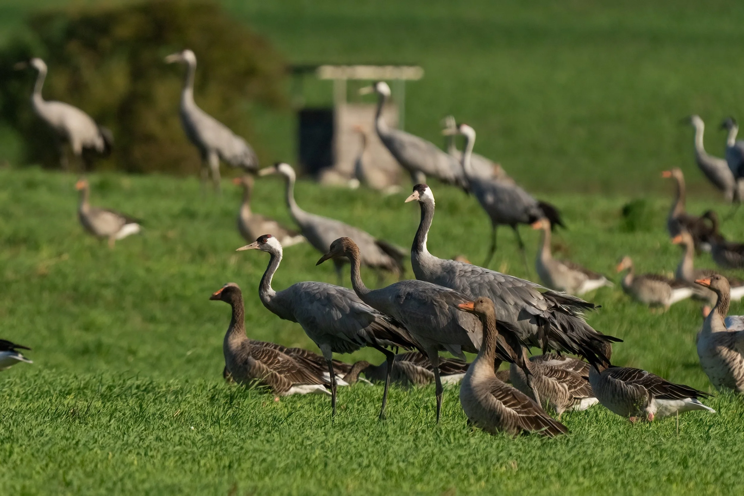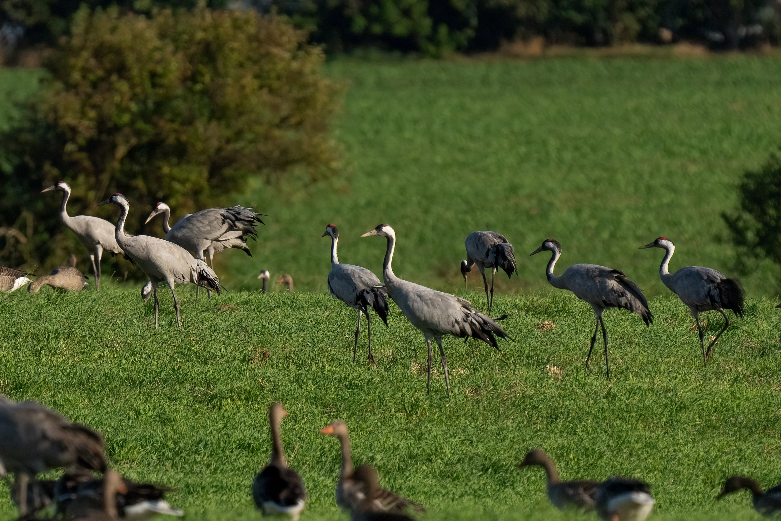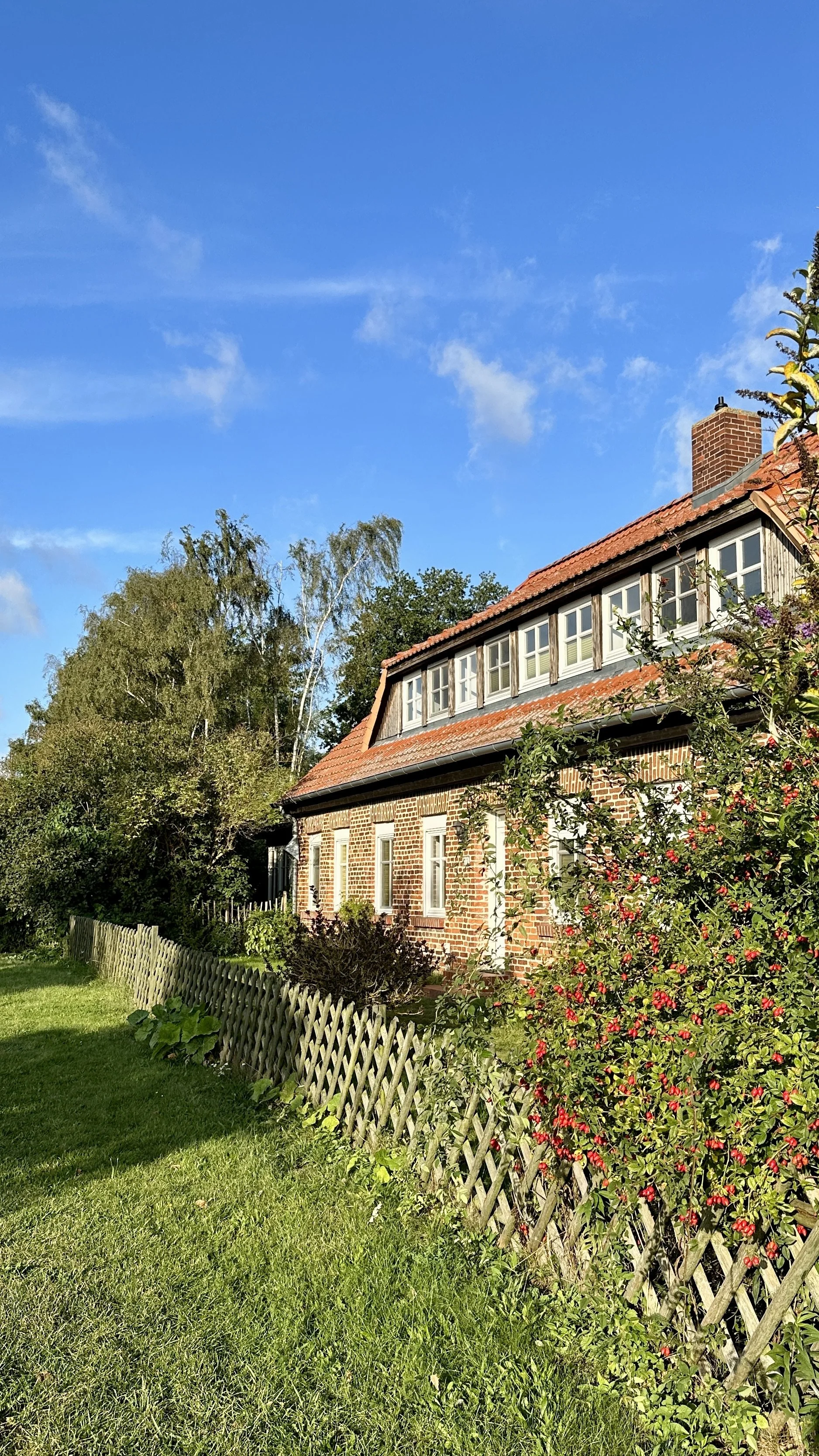 Our mornings at the home we rented in Sundhagen were marked by a peaceful symphony of bird songs. The porch of our cozy accommodation became our favorite spot to enjoy breakfast while watching the birds. The surrounding hedgerows and fields were active with birds every morning. We may have missed out on seeing storks on the nest platforms, but we were so pleased to hear and see cranes every morning!