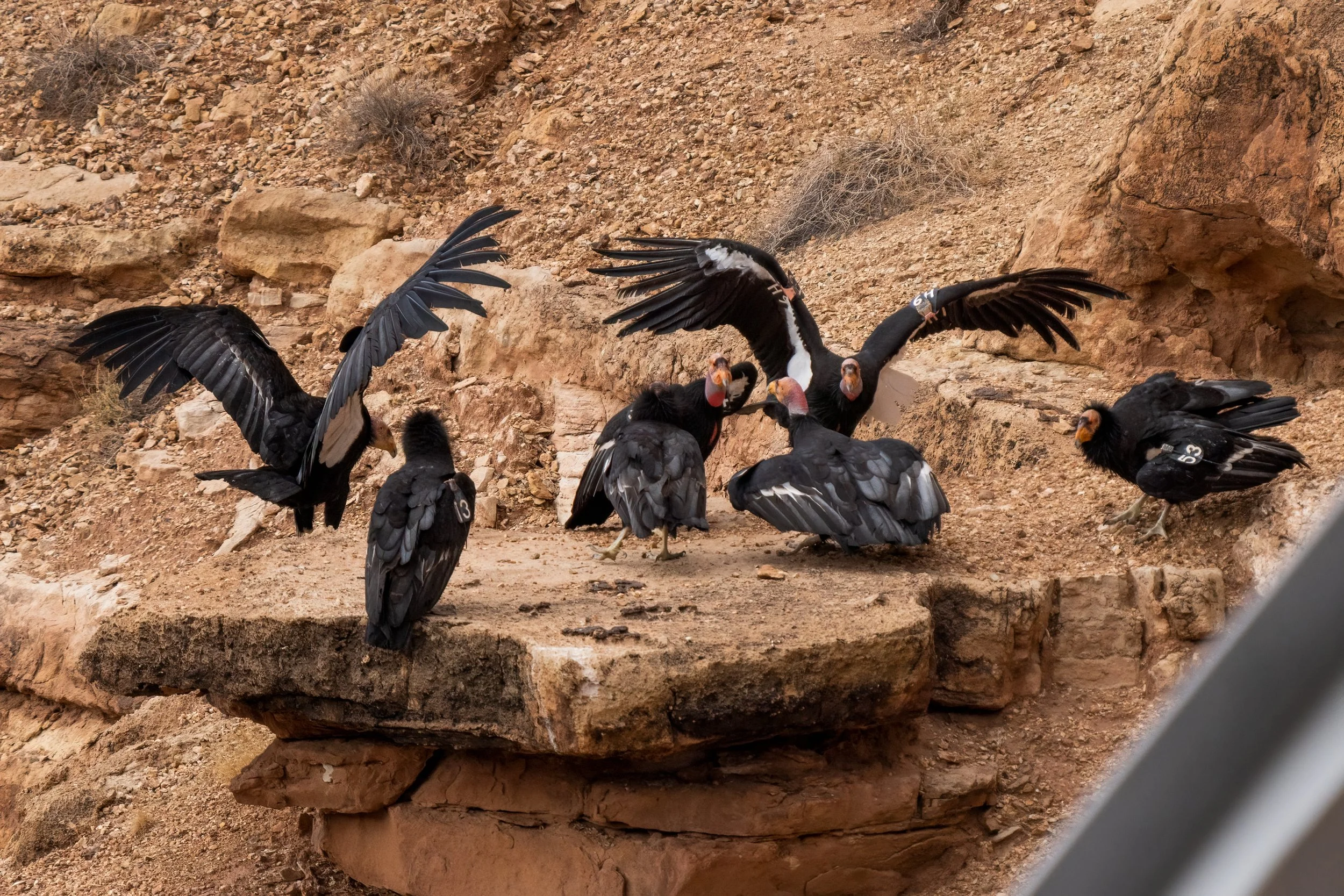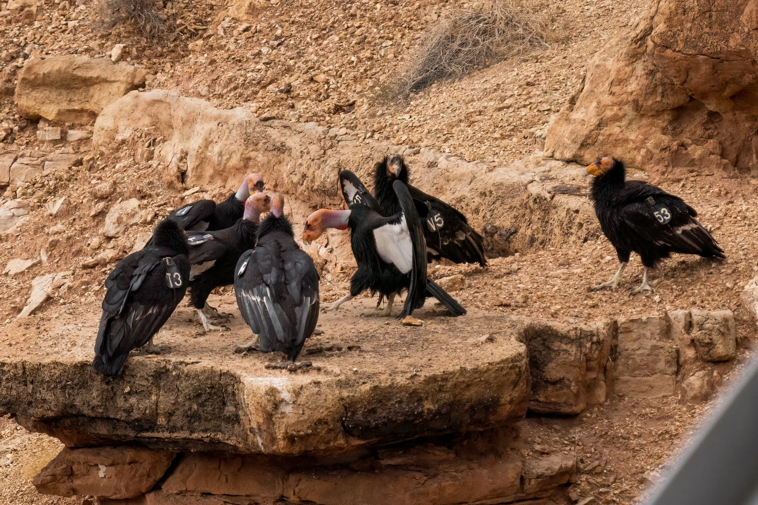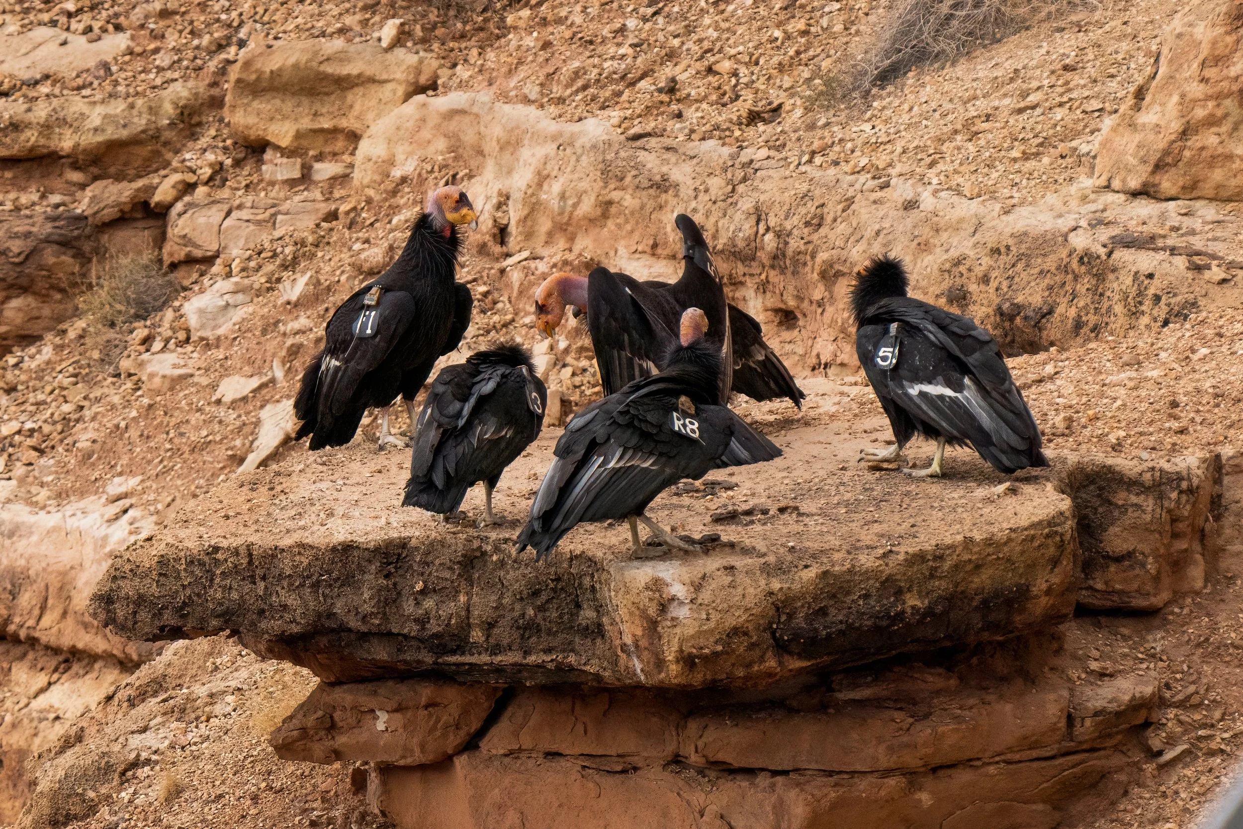 On this visit the condors were present and cooperative, and knowing the individual birds by their tag numbers added a layer to the experience that casual observation alone doesn't provide. The Peregrine Fund and Arizona Game and Fish maintain detailed records of the Vermilion Cliffs population, and the colored wing tags make individual identification possible from a reasonable distance.