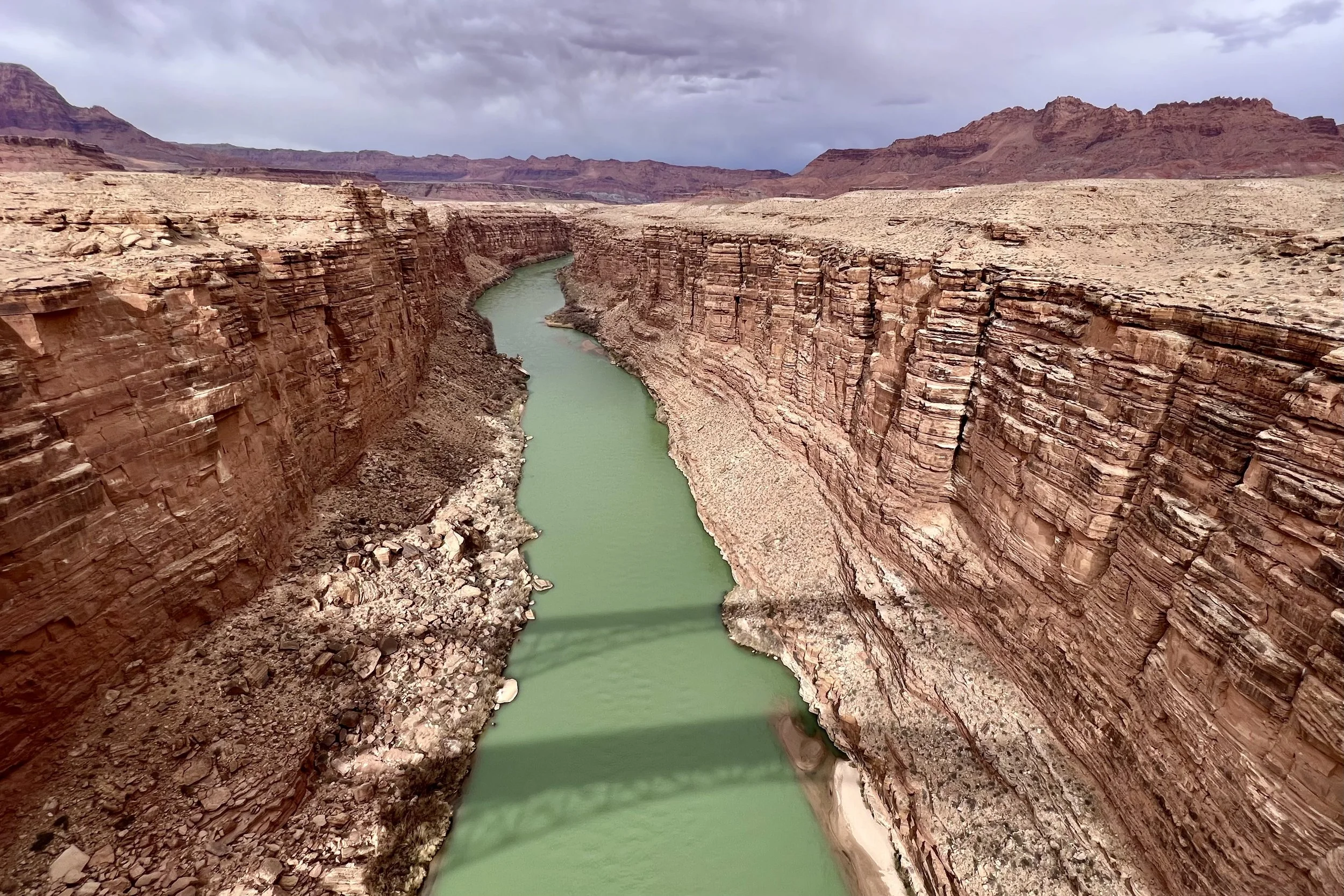 The double bridge structure itself is worth appreciating as a piece of engineering history. The 1929 span was the first steel arch bridge across the Colorado River and served as the only fixed crossing between Moab and Needles for decades. The second bridge, built in 1995, is longer, taller, and wider making it better suited to handle modern vehicles. Once this bridge was opened to vehicles, the older bridge was preserved as a pedestrian bridge.Standing on it now, watching condors that were nearly extinct a generation ago perch on the structure below, is a convergence of human history and natural history that is hard to find anywhere else.