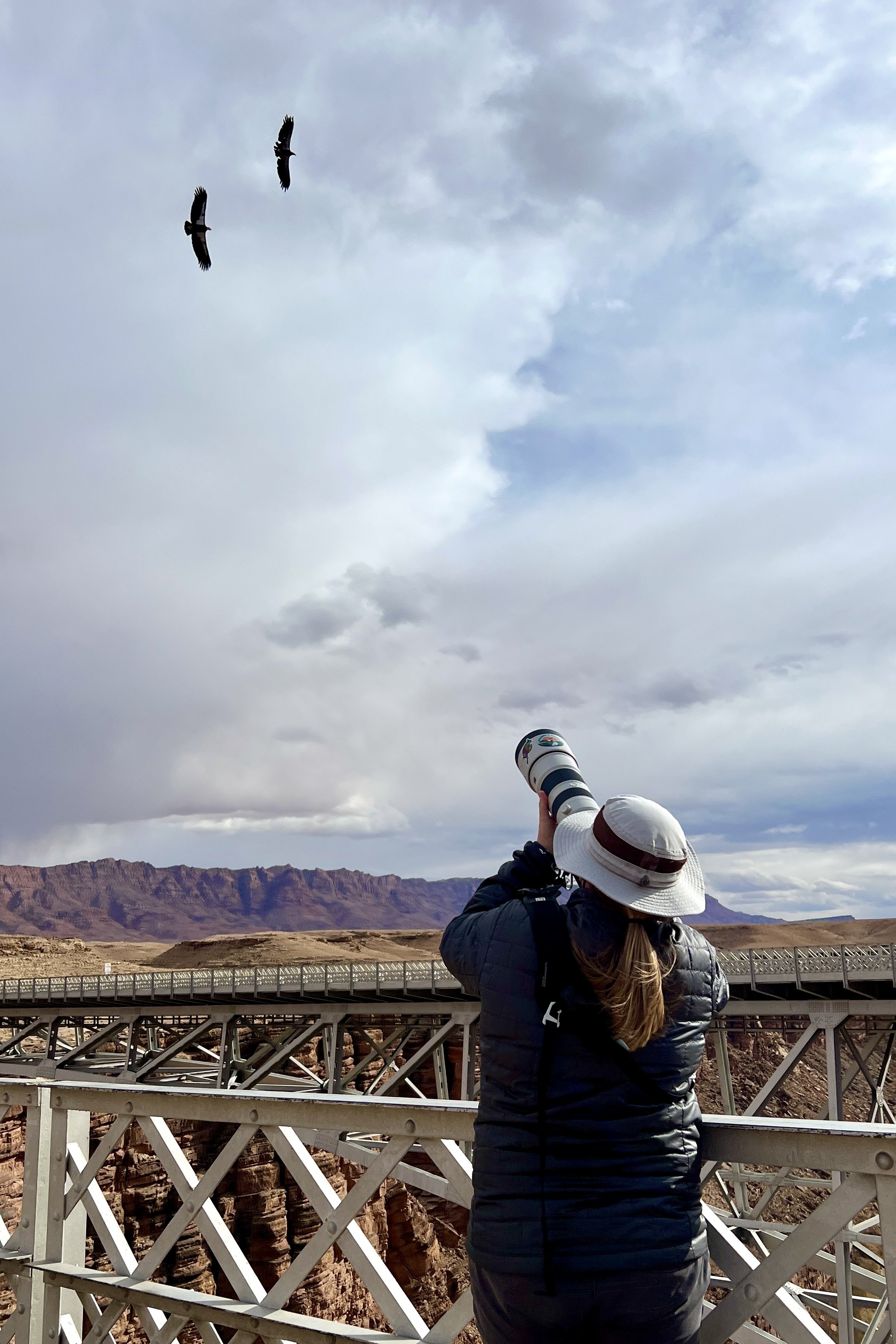 A visit to Navajo Bridge and the Vermilion Cliffs to see condors is one of those experiences that recalibrates your sense of what conservation can accomplish when the commitment to see it through is sustained over decades. Seeing these condors flying high, resting on the bridge, or having condor parties on the cliffs over the Colorado River is proof that conservation efforts are worthwhile.