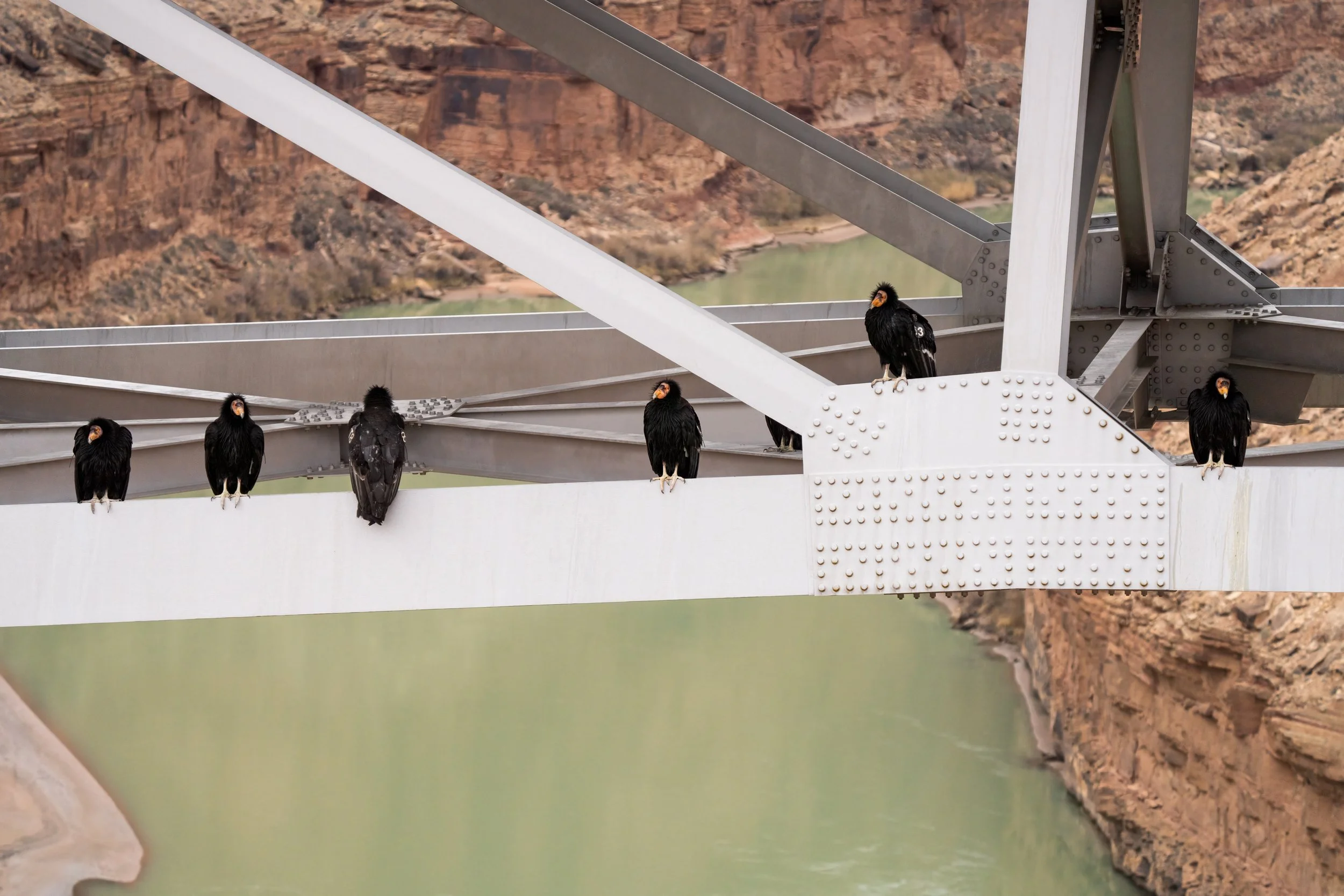 The Vermilion Cliffs site received its first reintroduced birds in 1996, and the Arizona and Utah population has grown steadily since. Lead poisoning from ammunition in carcasses remains the primary ongoing threat to condor survival, and continued monitoring, supplemental feeding, and public education around the use of non-lead ammunition are central to keeping the recovery on track. The presence of these big birds perching on a bridge over the Colorado River in plain sight of anyone who stops to look is a measure of how far that effort has come.