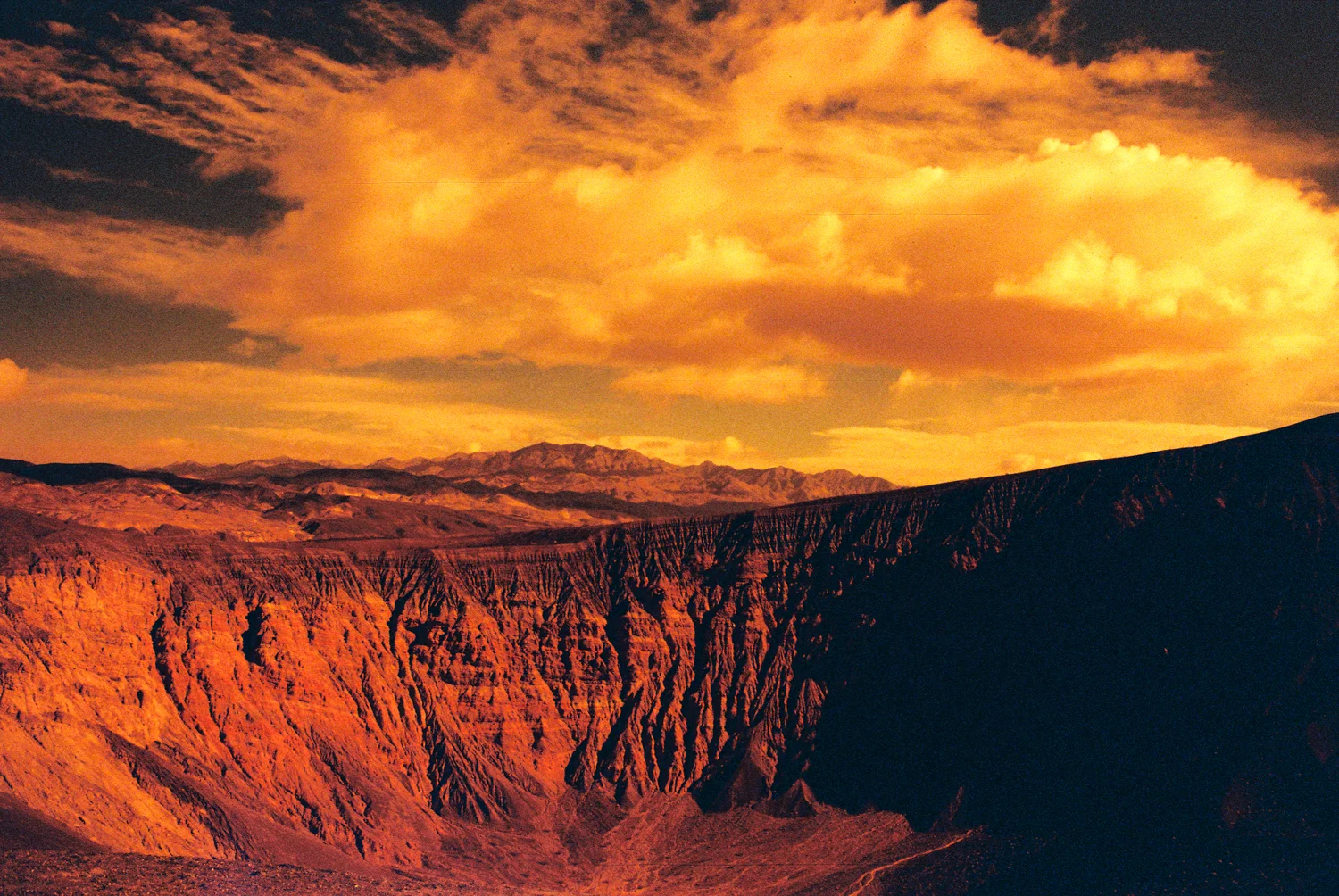 Titus Canyon is a 27 mile long "high-clearance vehicle" backcountry road that starts on Daylight Pass Road and goes one-way back into the park through the Grapevine Mountains and into a spectacular canyon ending at Scotty's Castle Road.