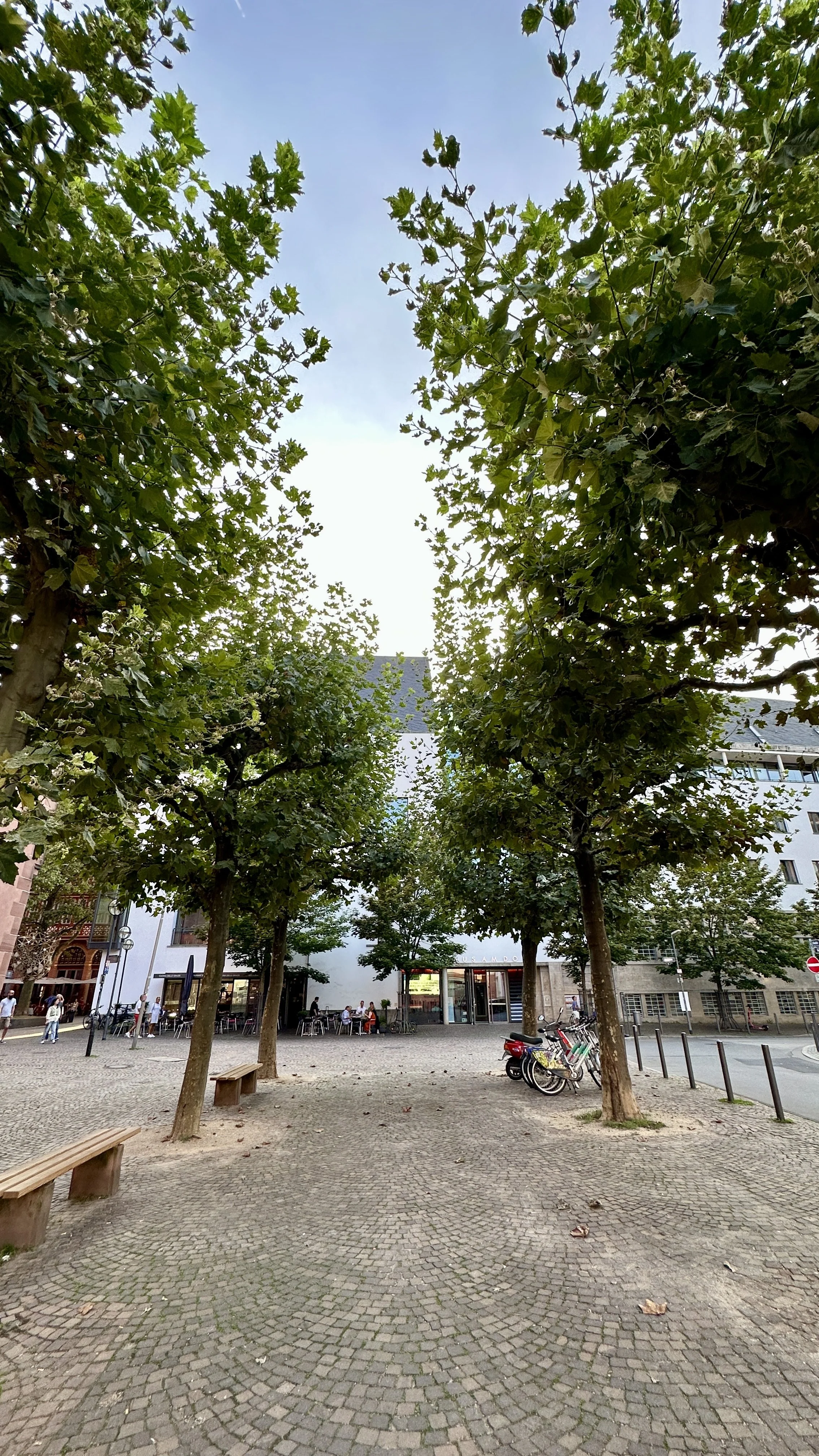 The next day started with freshly made espresso and croissants in the breakfast lobby. Frankfurt had a different quality than the other cities we visited, and the walk through the old town before heading to the train helped us to appreciate it even more than we already did.