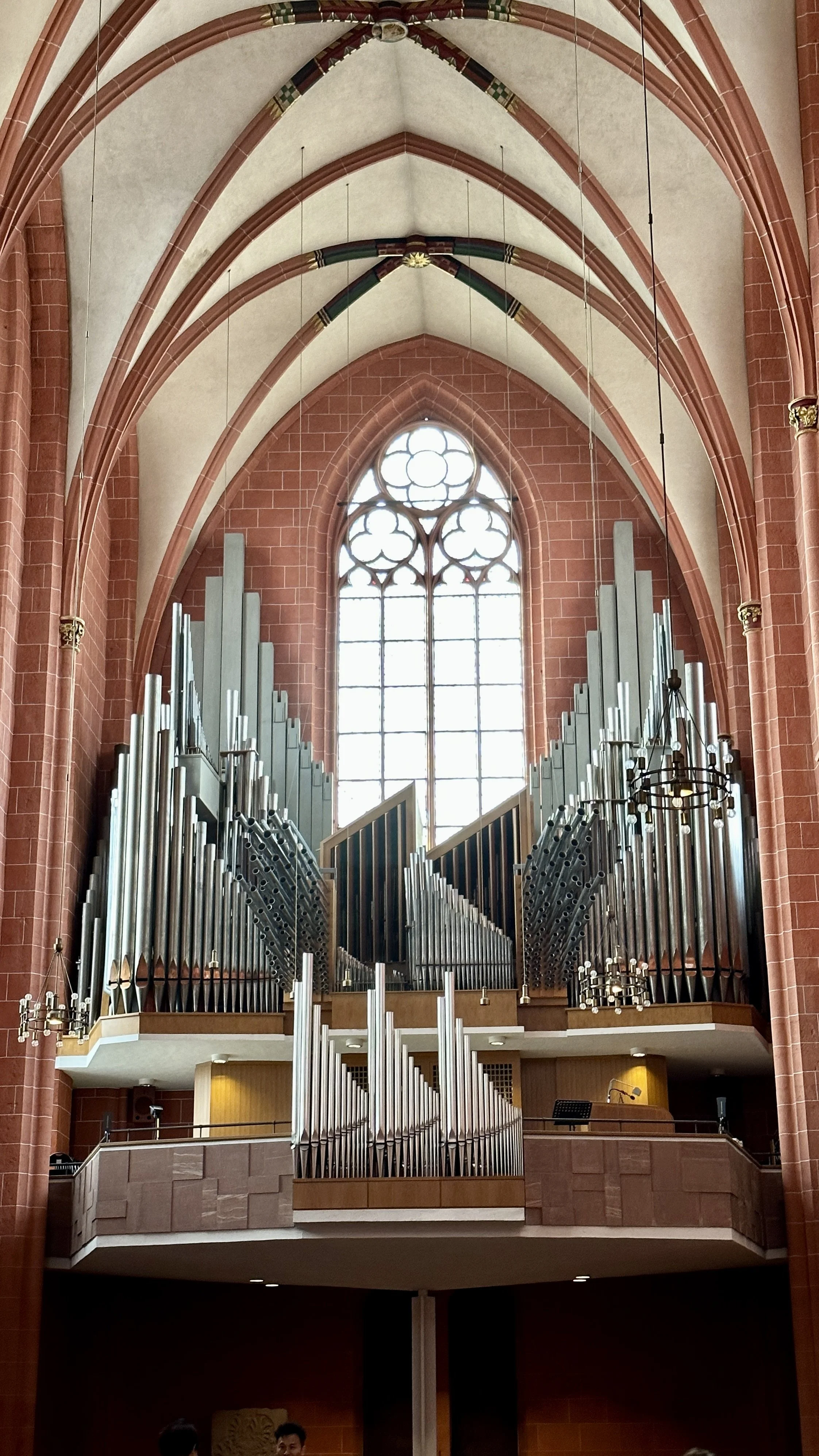 We stopped by the Cathedral of St. Bartholomew. The Gothic interior is genuinely impressive, the stained glass throwing colored light across stone that has been standing since the 14th century, and the organ above the nave is one of those instruments that makes the space feel built around it. The history layered into this building - coronations of Holy Roman Emperors, partial destruction in World War Two, careful reconstruction - slowed us down to absorb and appreciate this as much as we could.