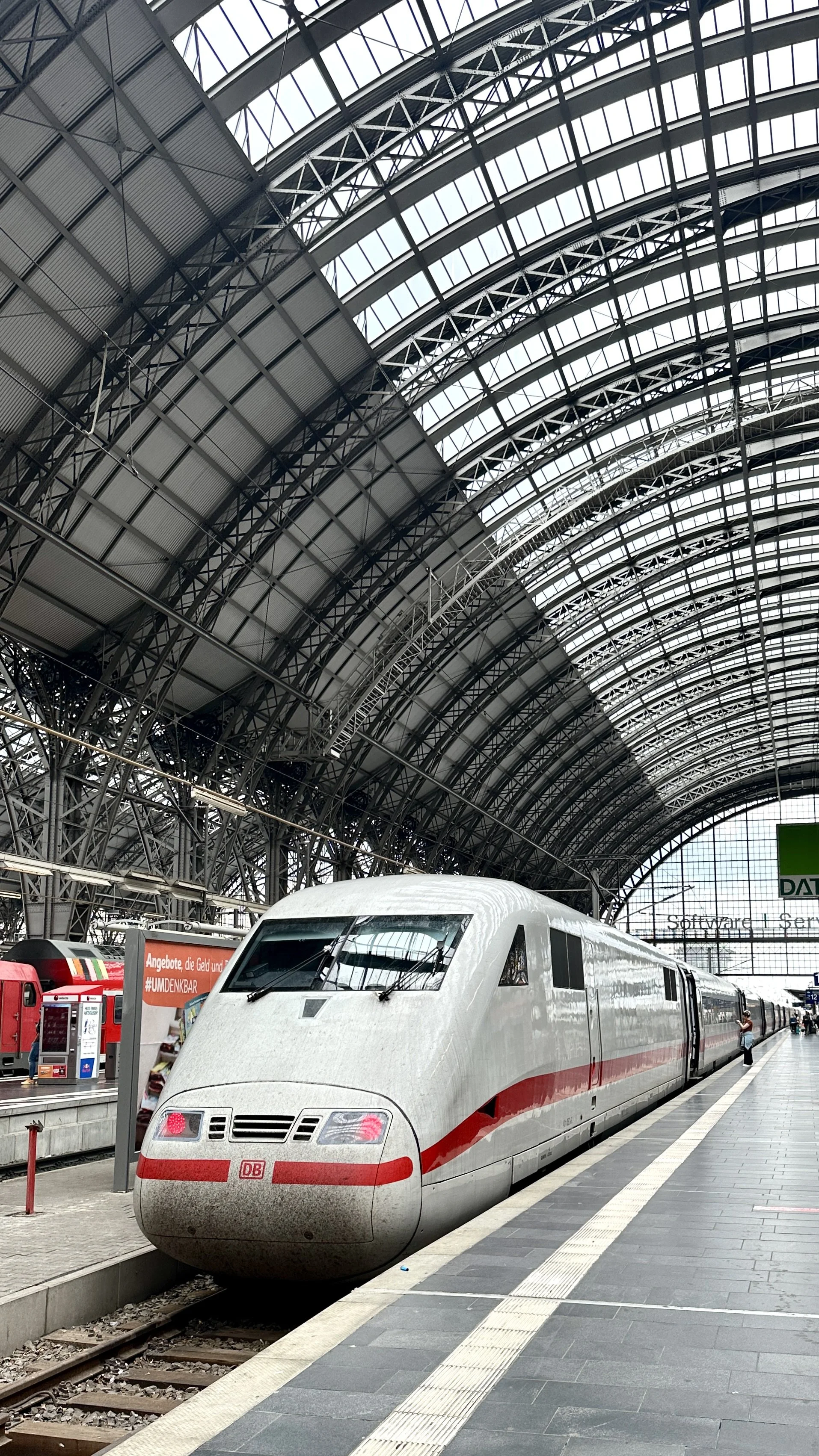 Frankfurt Hauptbahnhof was my first grand European terminal station, and it made it feel like I was attending something grand, much more than just a commute to Berlin. The arched glass and iron roof covers a dozen or more platforms with an organized chaos of a major European hub. We found our train to Berlin, after picking up some egg & pickle sandwiches (why do these not exist in the US, yum!) in the station and off we went. The city gave way to open countryside that held its own interest!