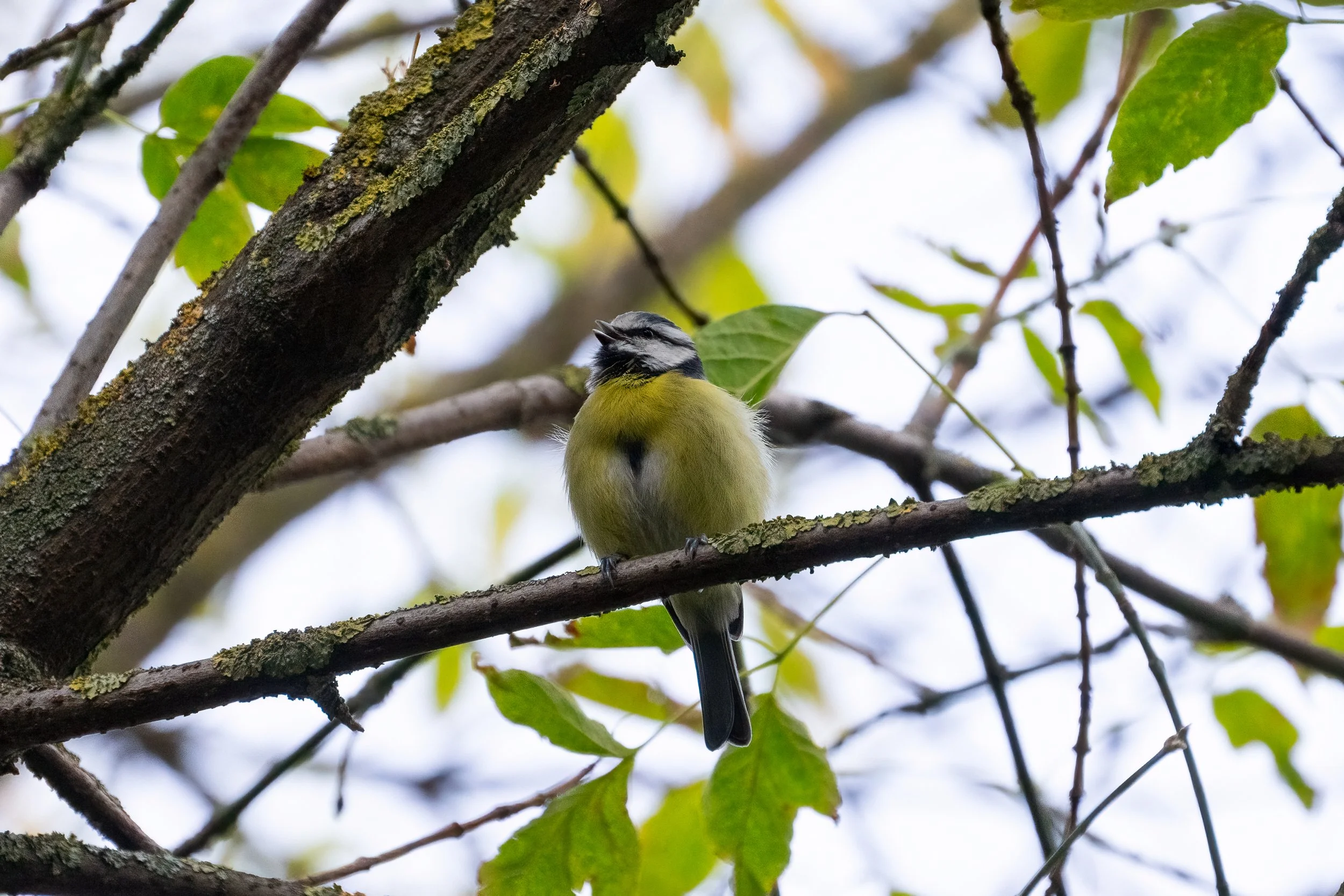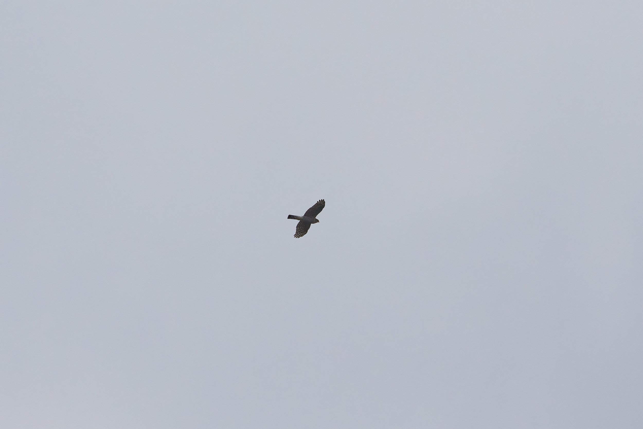 The smaller birds along the embankment trees were fun too. Eurasian Blue Tits moved through the riverside trees in small flocks, that vivid blue cap and yellow underparts immediately familiar from field guides but considerably more satisfying in person. Carrion Crows worked the open ground along the path. And then a brief, high, fast shape crossed the sky and resolved itself in the camera to be a Eurasian Sparrowhawk!