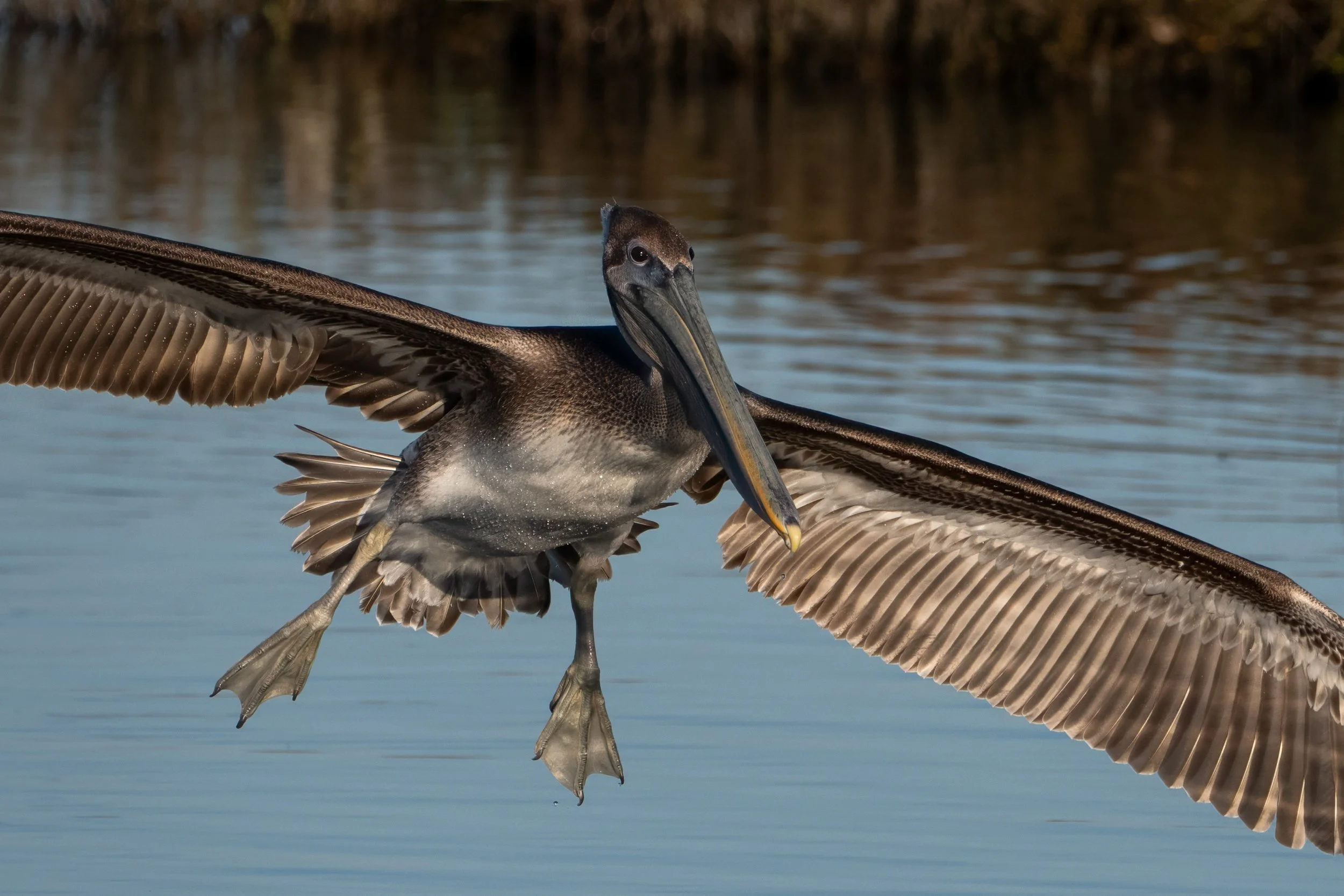 The Brown Pelican is the smallest of the world's eight pelican species, which is a relative term: it still stretches up to four and a half feet from bill tip to tail, with a wingspan that can reach seven feet. It is also, uniquely among pelicans, a plunge diver - willing to hurl itself from heights of sixty feet or more to catch a fish, relying on air sacs beneath its skin to cushion the impact. It’s truly amazing to see a bird of this size just plunge itself straight down into the water!