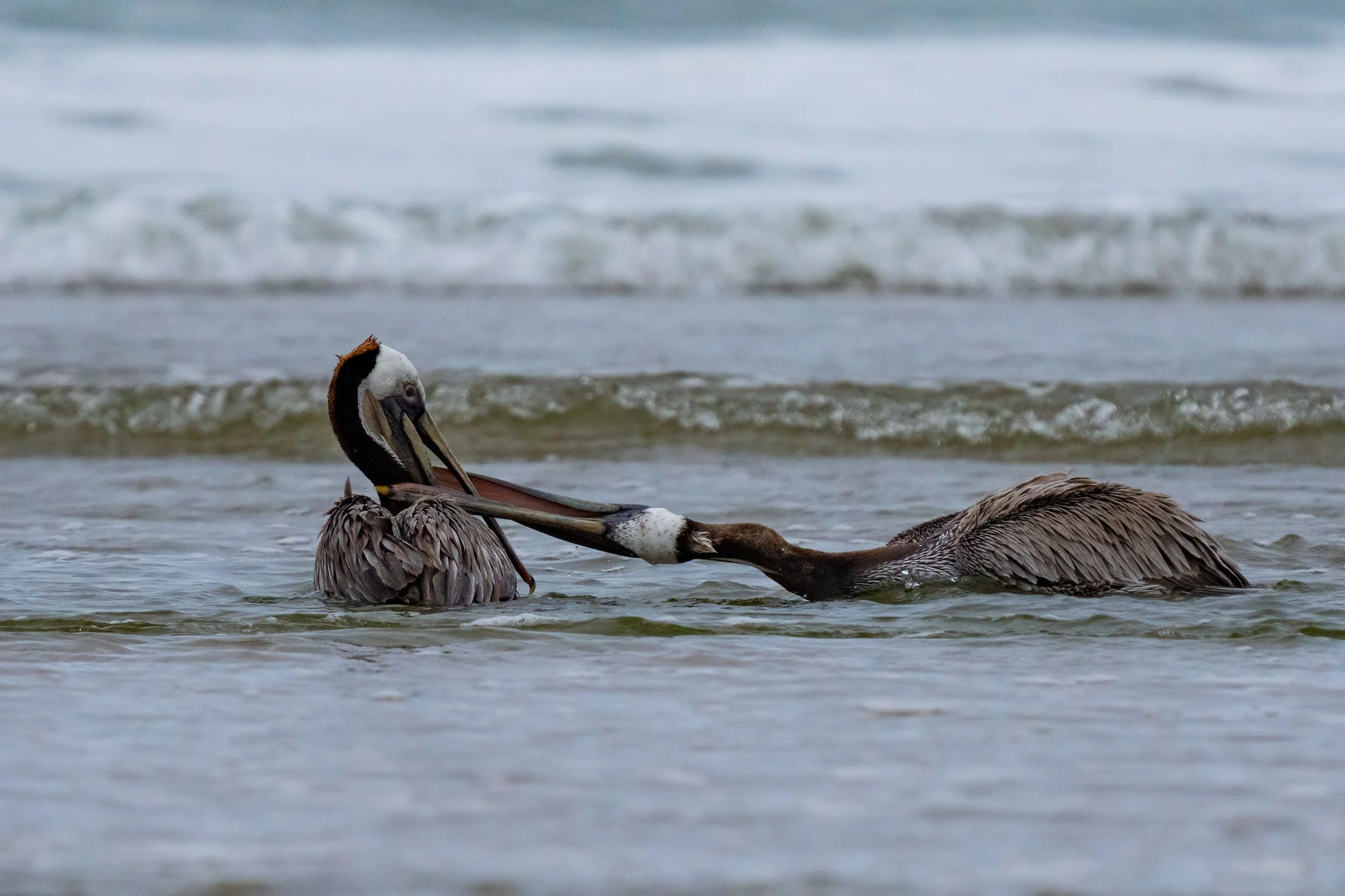 → Brown Pelicans are the only pelican species in the world that plunge-dive to catch fish.