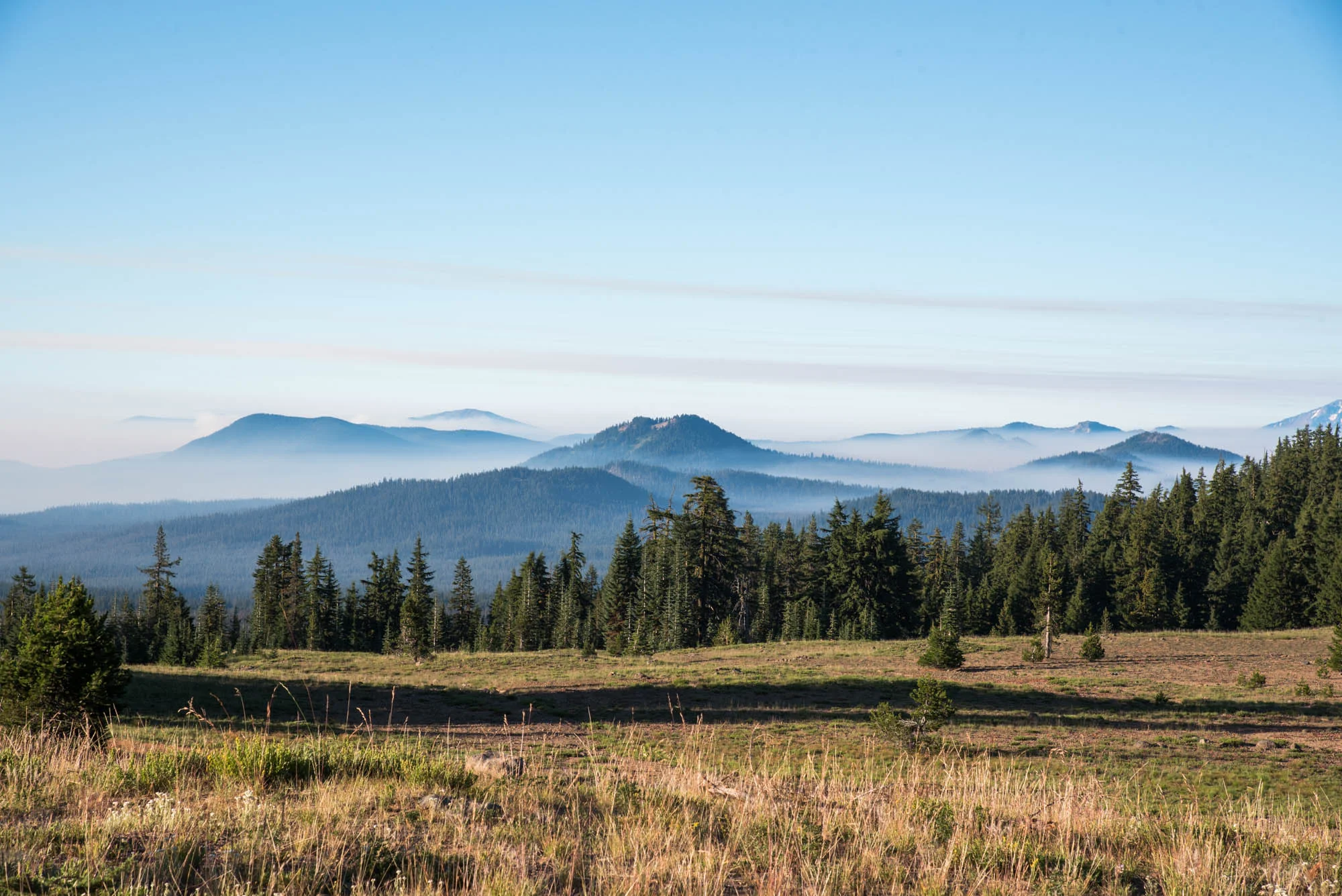 This hike is 3.3 miles round trip, with an elevation gain of a little over 1,000 feet. The majority of the hike up is in the shade and winds around the rim with a lot of views of the lake. From the other side of the trail you see some epic views as well - the sweeping Southern Cascades and Klamath Basin.