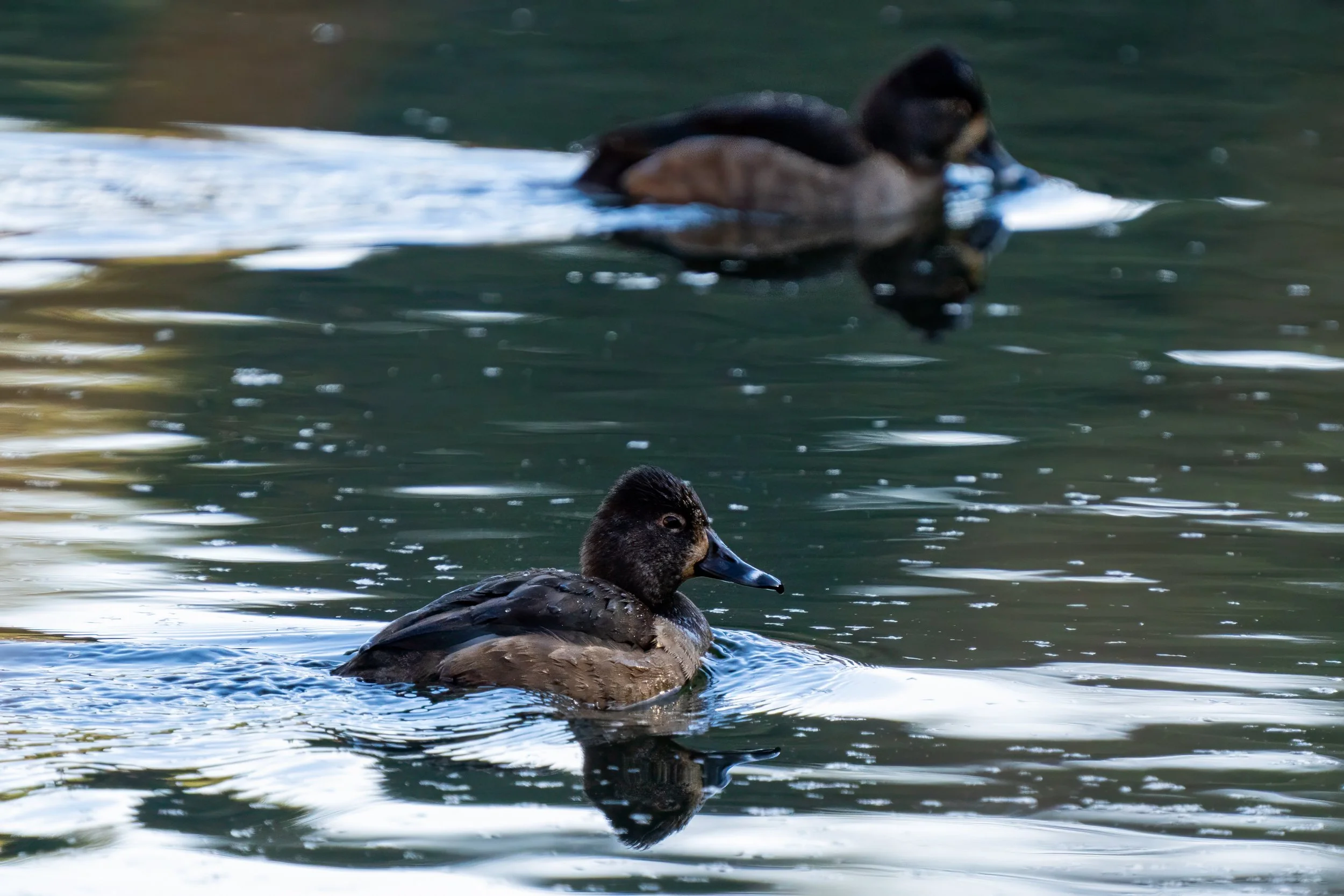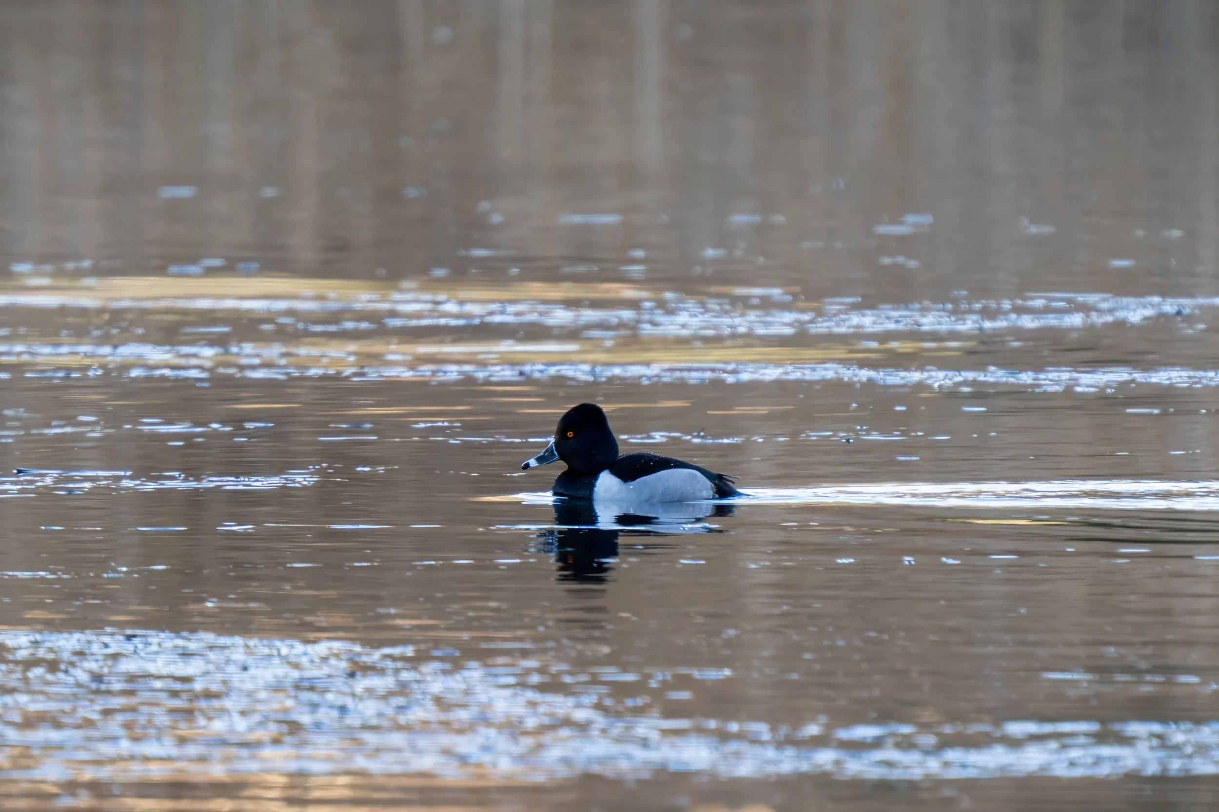 Ring-necked Ducks are a regular find on the pond, compact diving ducks that sit low in the water and tend to ignore you if you approach quietly. Mallards keep them company in the shallows, and it's become a reliable first stop before the hike begins.