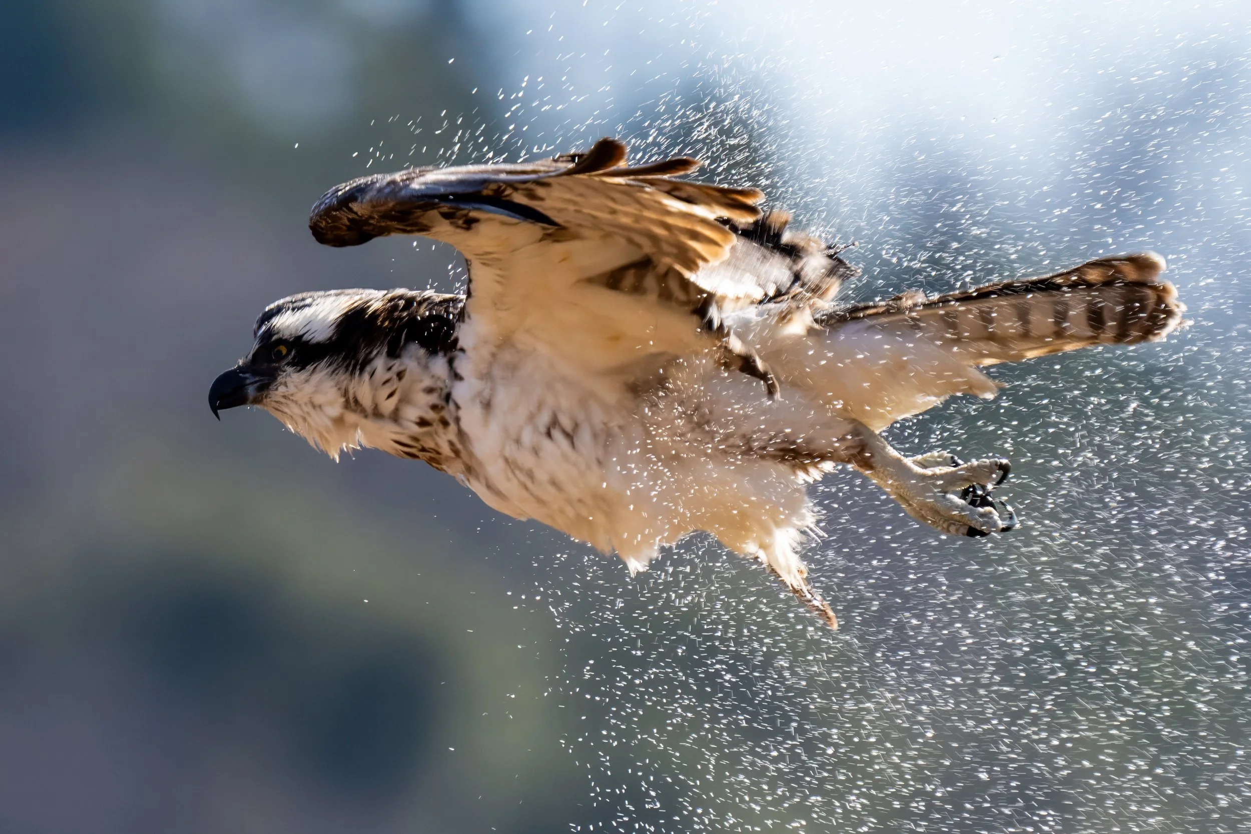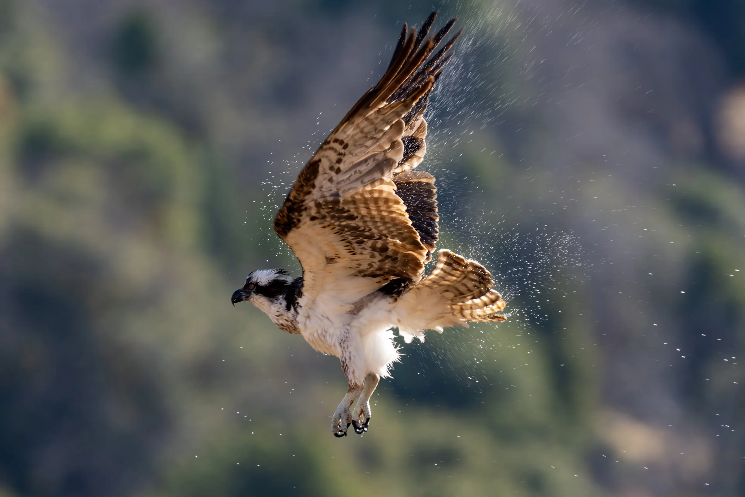 Osprey An Osprey circling low over the pond is not something you expect this far from the coast, but it happens. They follow water wherever it leads, and the pond up here is apparently worth the detour. This one gave me a spectacular post-dive shake out, sparkling in the sunlight!