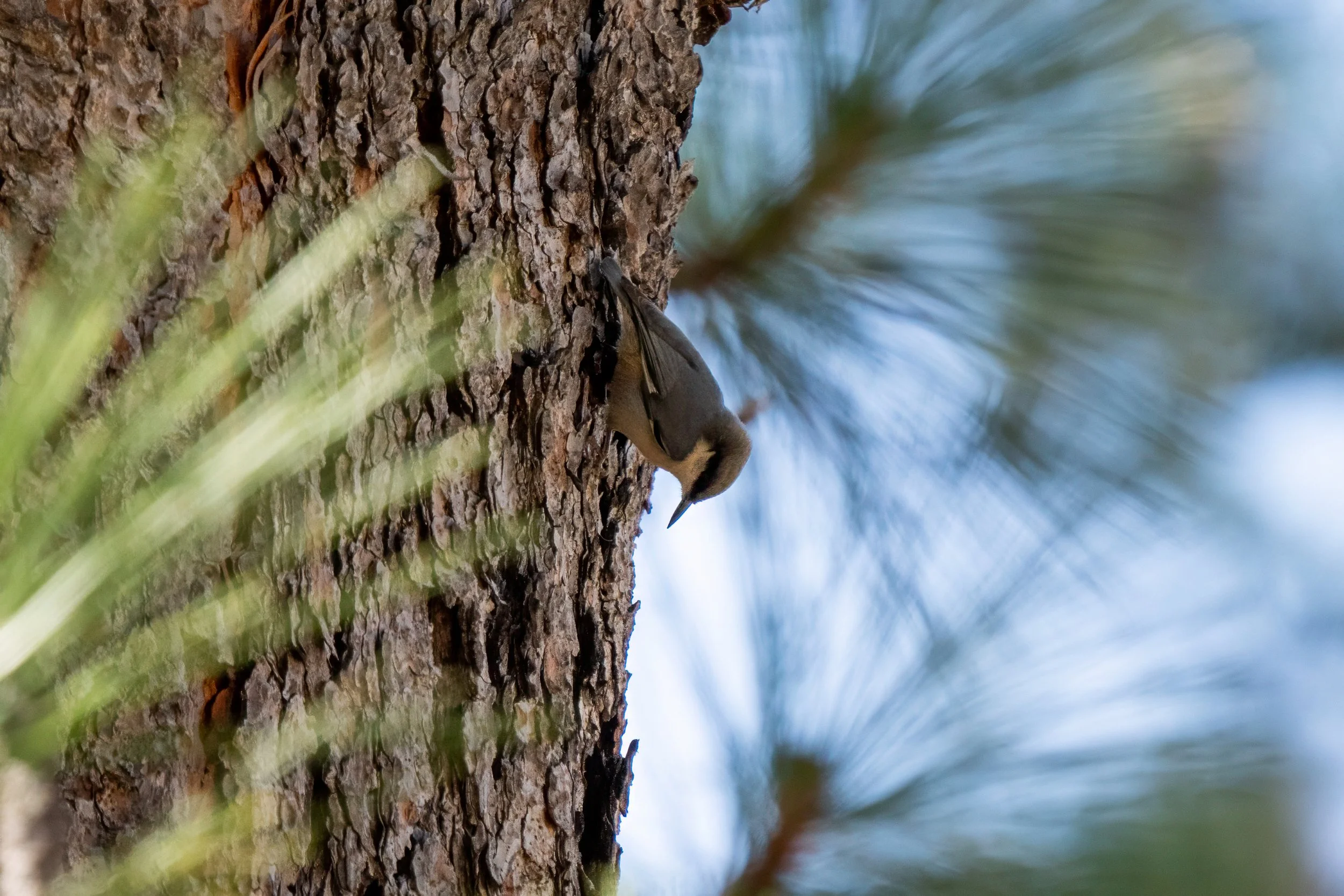 Pygmy Nuthatch Pygmy Nuthatches move through the pines in loose, chattering flocks. They're tiny even by nuthatch standards, and watching a mixed flock work through the canopy is one of the better things this trail offers.