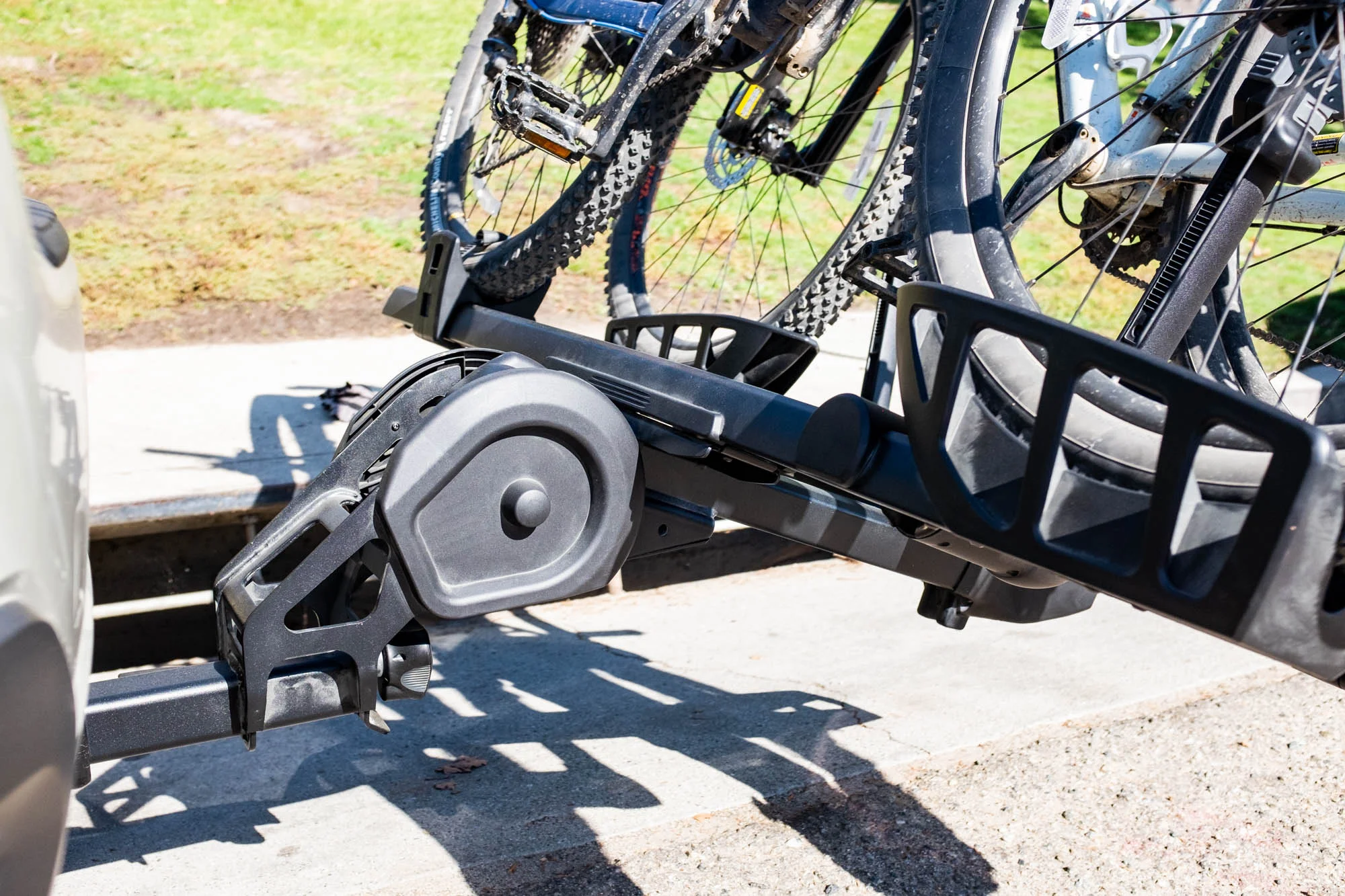 The rack installs easily by sliding into the hitch, with a safety pin on the side, and then a tool-free locking knob - it just requires tightening down, then locking, and it’s ready to go