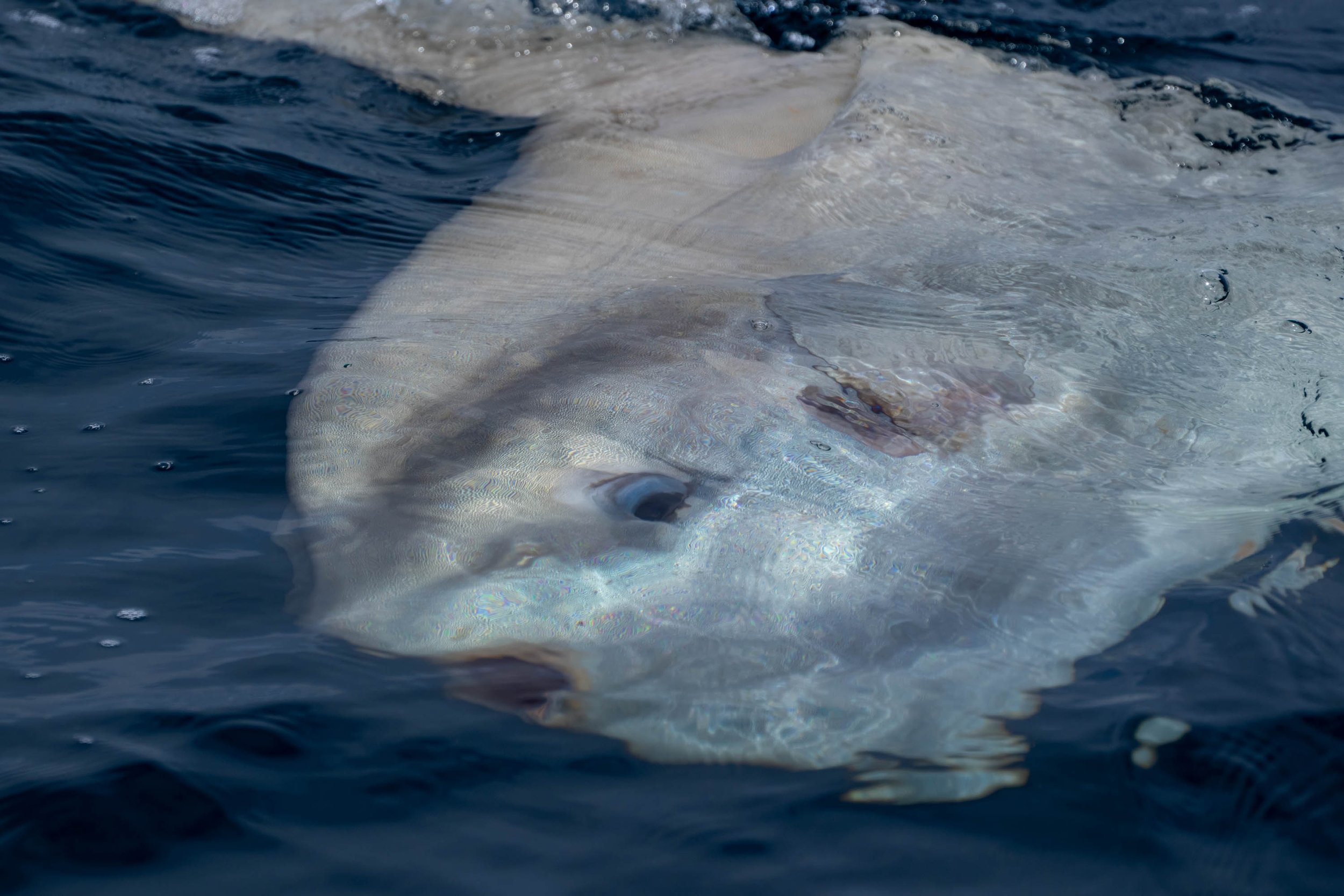 A Mola Mola finning at the surface is one of my favorite moments on a boat. They are enormous, flat, and have huge eyes. They also tend to suck or blow bubbles on the surface of the water. This one was just drifting at the surface the way they do, soaking up warmth, completely unbothered by the presence of the boat. I never get tired of seeing them.