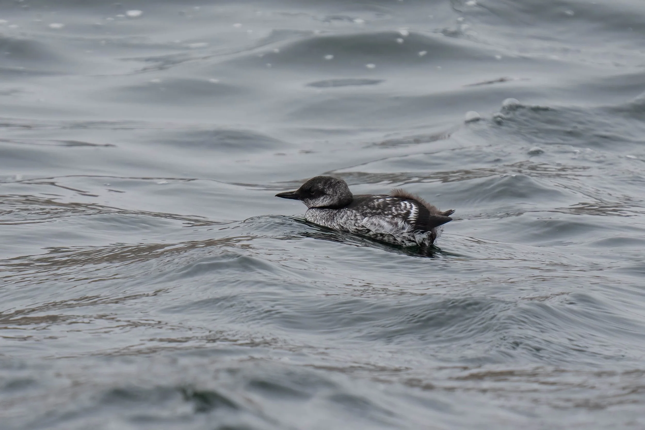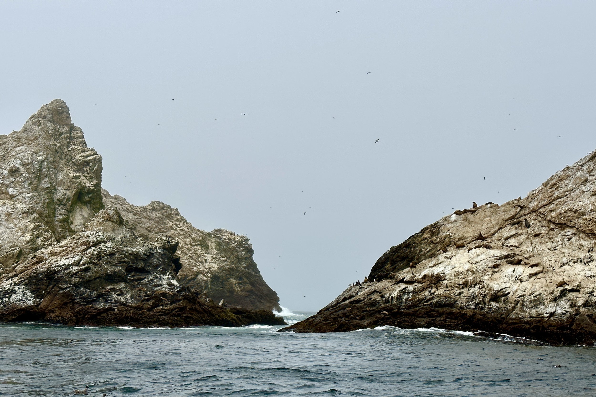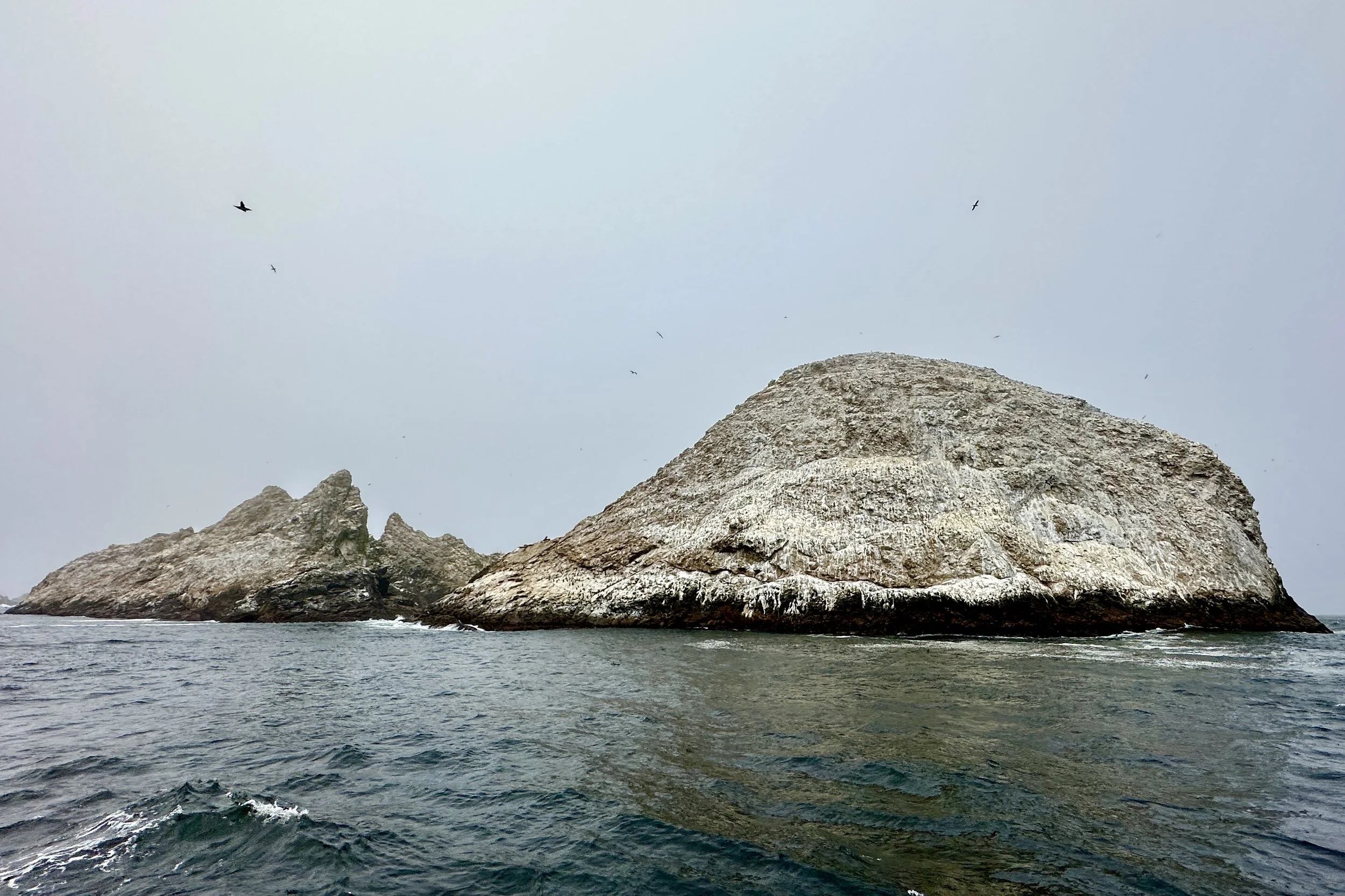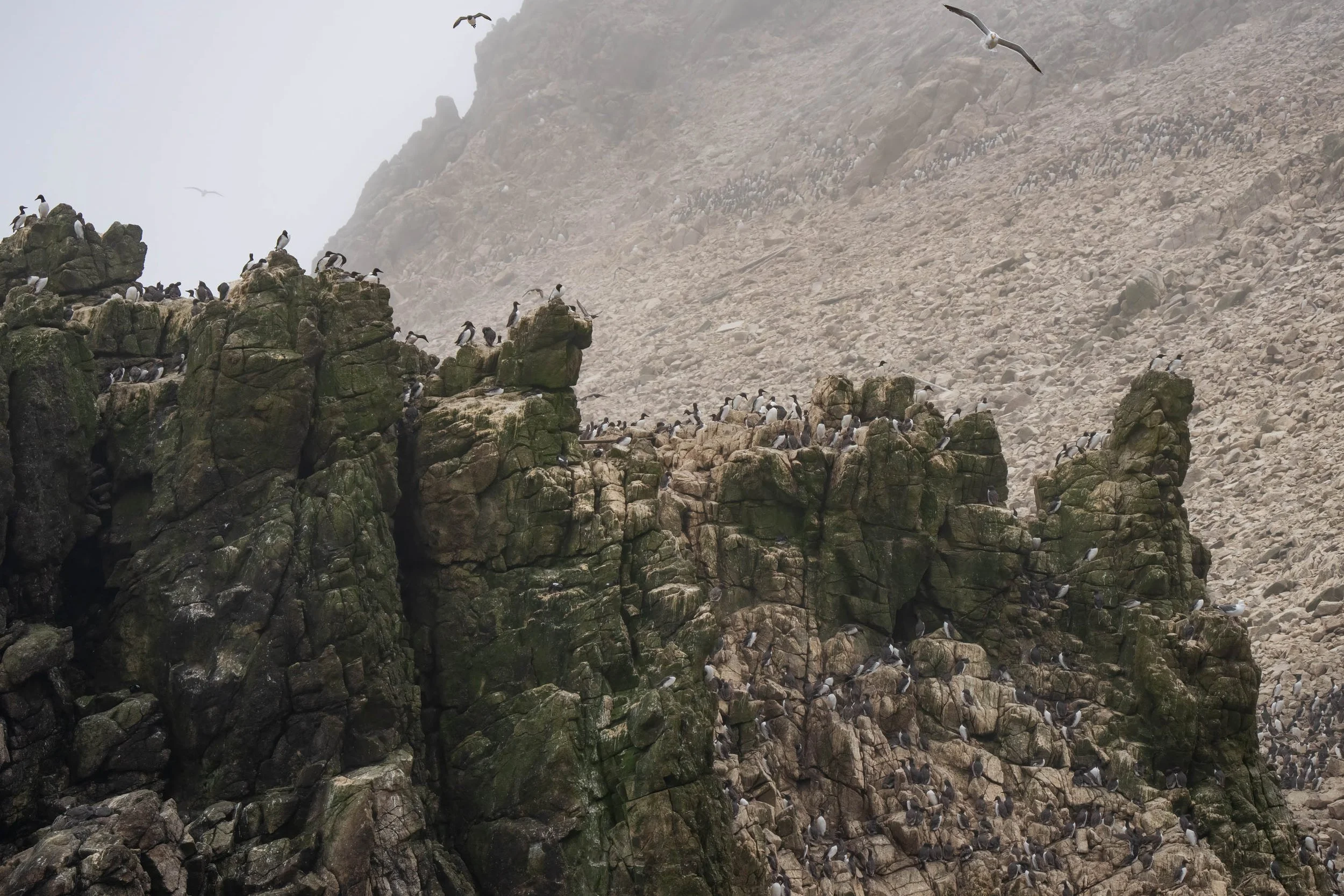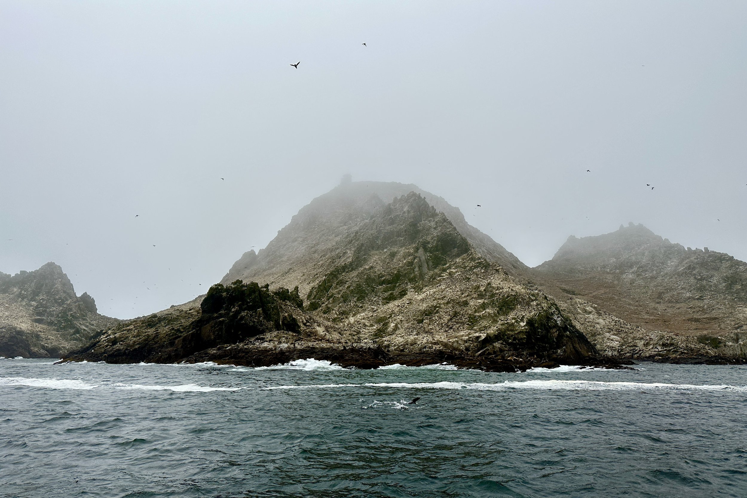 The conditions on departure were marginal. Fog sat heavy over Pillar Point Harbor and the first hour of the crossing was slow, the short steep chop limiting how quickly the boat could move and making life uncomfortable for most people on board. Cameras stayed in bags. People stayed inside the tiny cabin. Gradually, though, the wind eased, the wave spacing opened up, and the boat began to move with more purpose toward the islands. By the time the South Farallons came into view the conditions had improved considerably, and the relief on board was palpable.