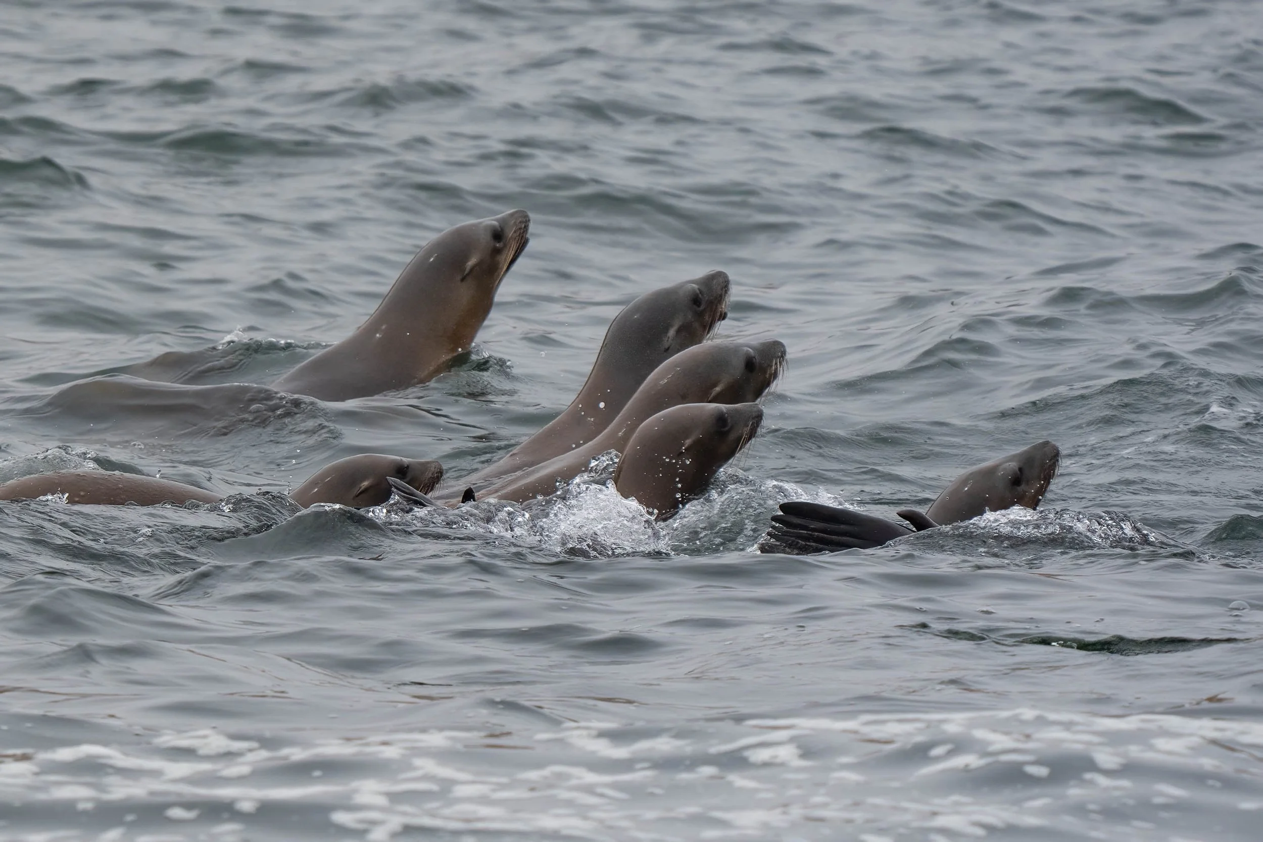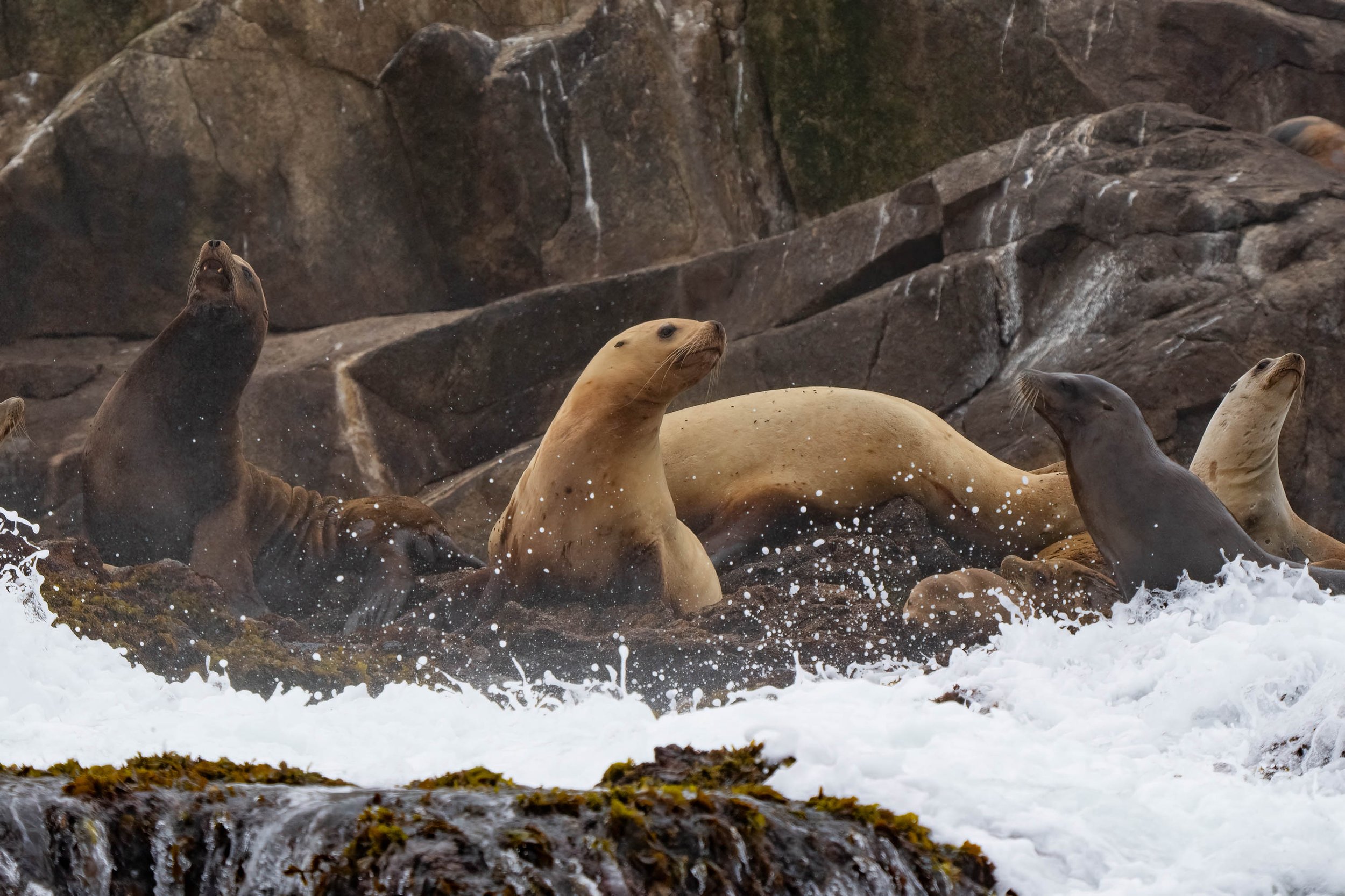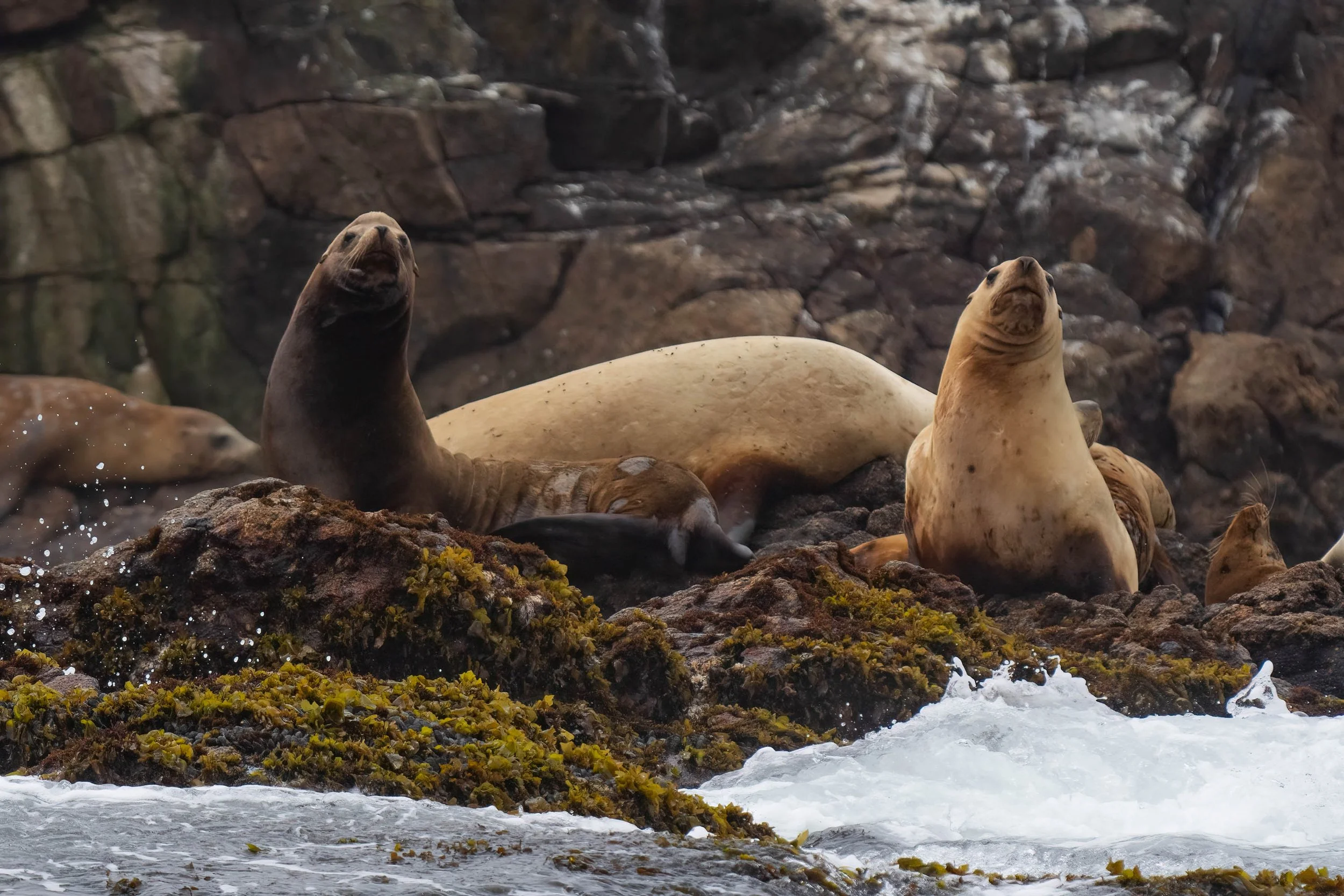 The marine mammal viewing at the islands was exceptional. California and Steller's Sea Lions hauled out on the rocks in good numbers, and Northern Fur Seals added to the pinniped spectacle. The size difference between the California and Steller Sea Lions, visible side by side on the same haul-out rocks, is one of those things that is surprising when you see it in person.