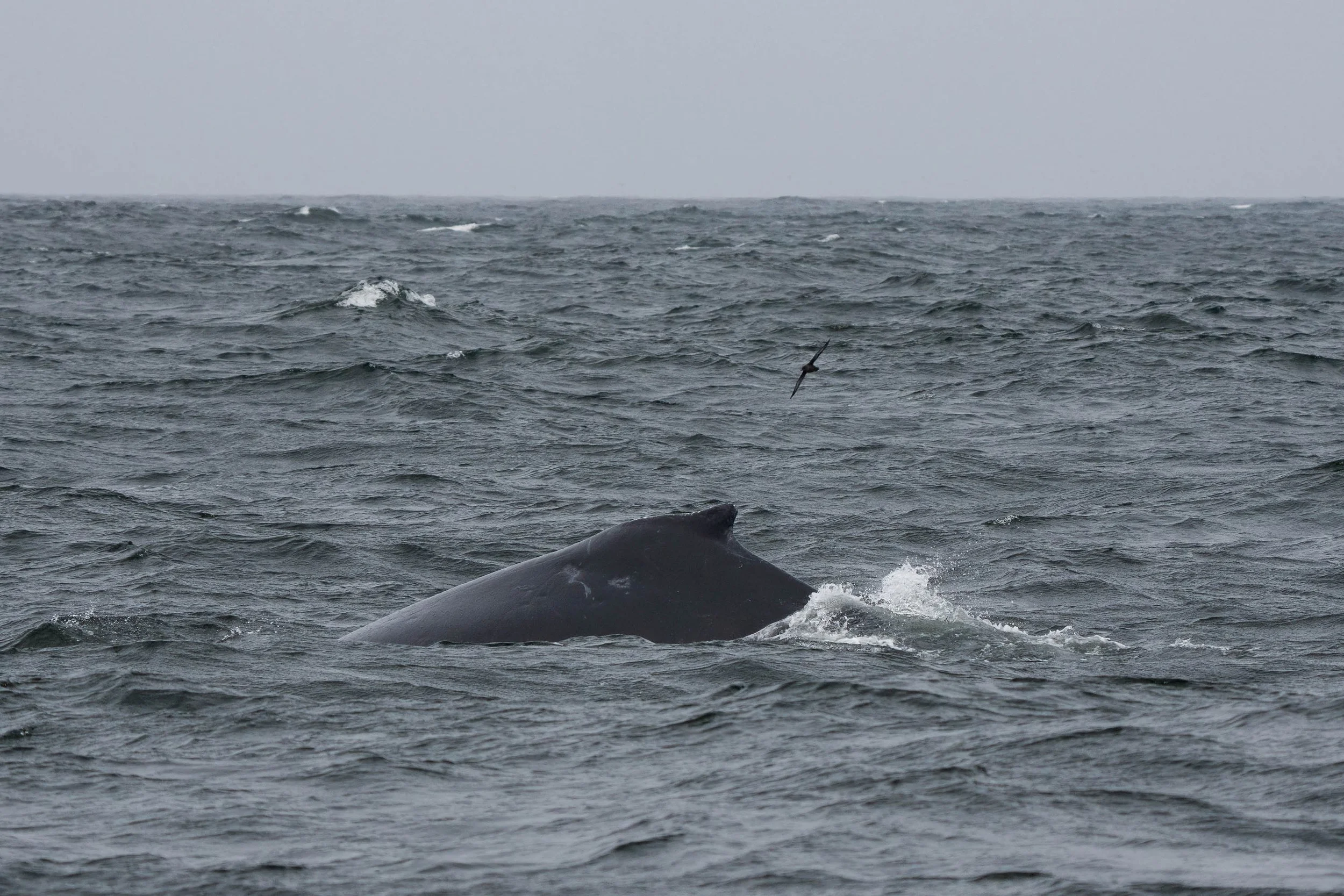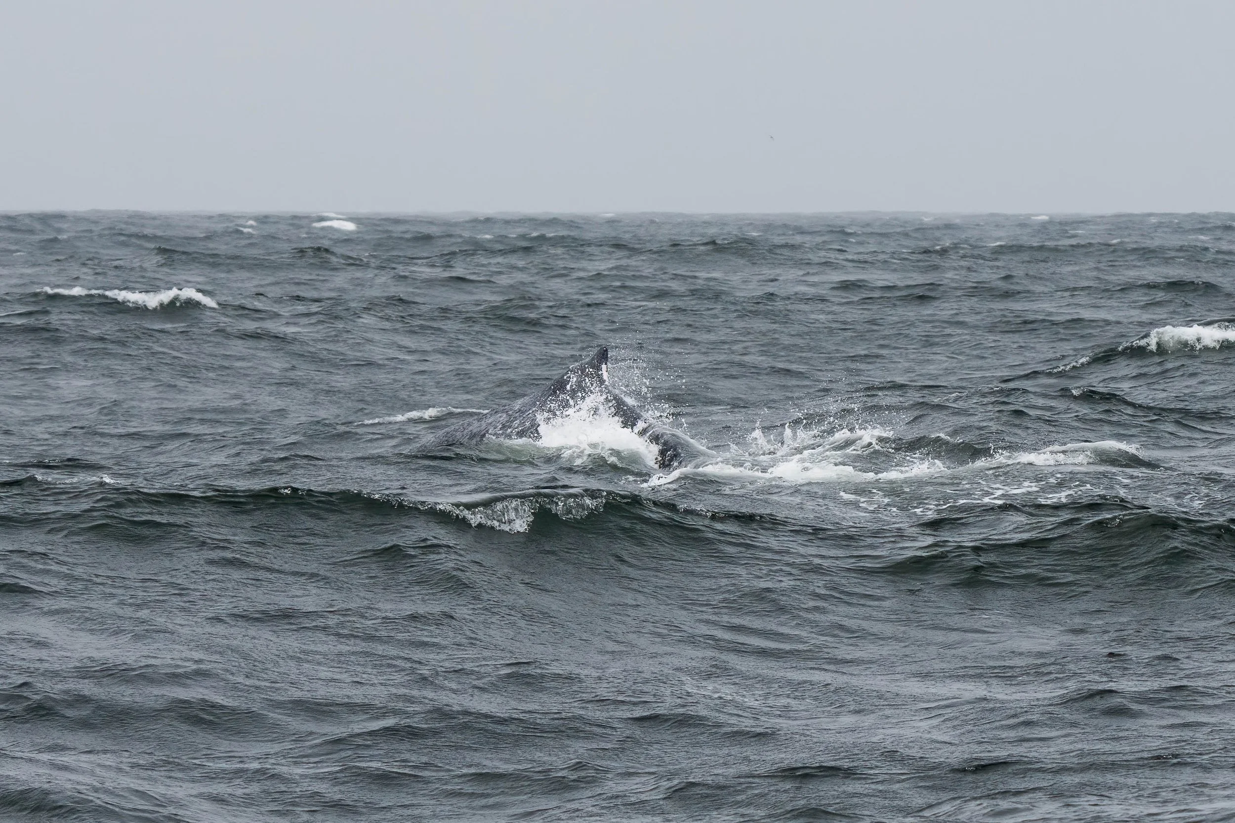 On the outbound crossing two Humpback Whales surfaced in the fog, briefly visible in the low visibility before disappearing again - a promise of what was to come on the return.
