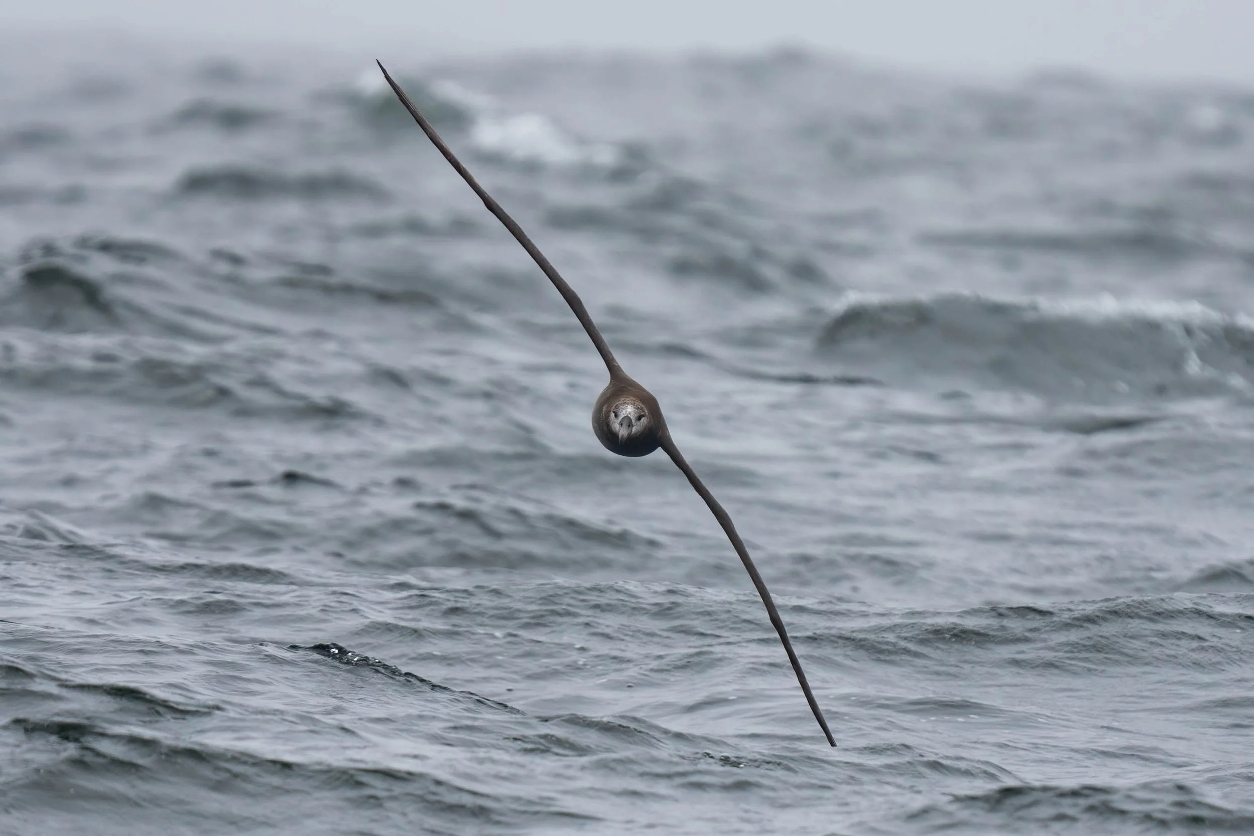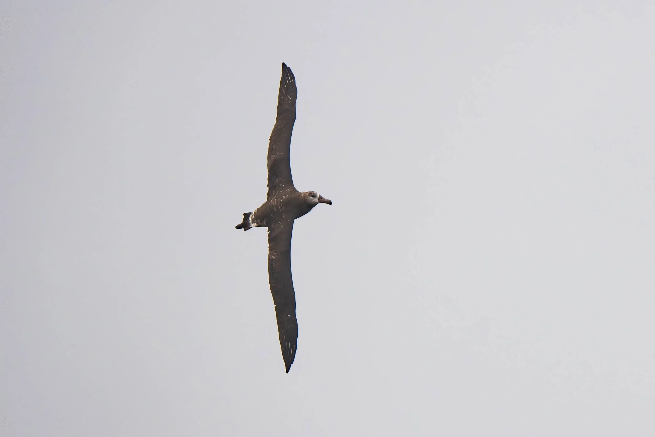 Leaving the islands, the conditions held well enough to allow a run to the continental shelf, where the deep water offshore produces a completely different suite of pelagic species than the shallower waters. The late arrival at the islands meant time was limited, but the shelf delivered quickly. A Black-footed Albatross found the boat almost immediately, banking low over the deep-water swell with that extraordinary effortless flight style that uses wind and wave surface in a way that seems to defy the energy involved. Watching one work the troughs between swells, wings nearly touching the water on the downstroke, is one of the more elemental birding experiences the California offshore has to offer. At least five Black-footed Albatrosses greeted out boat out on these deep waters.